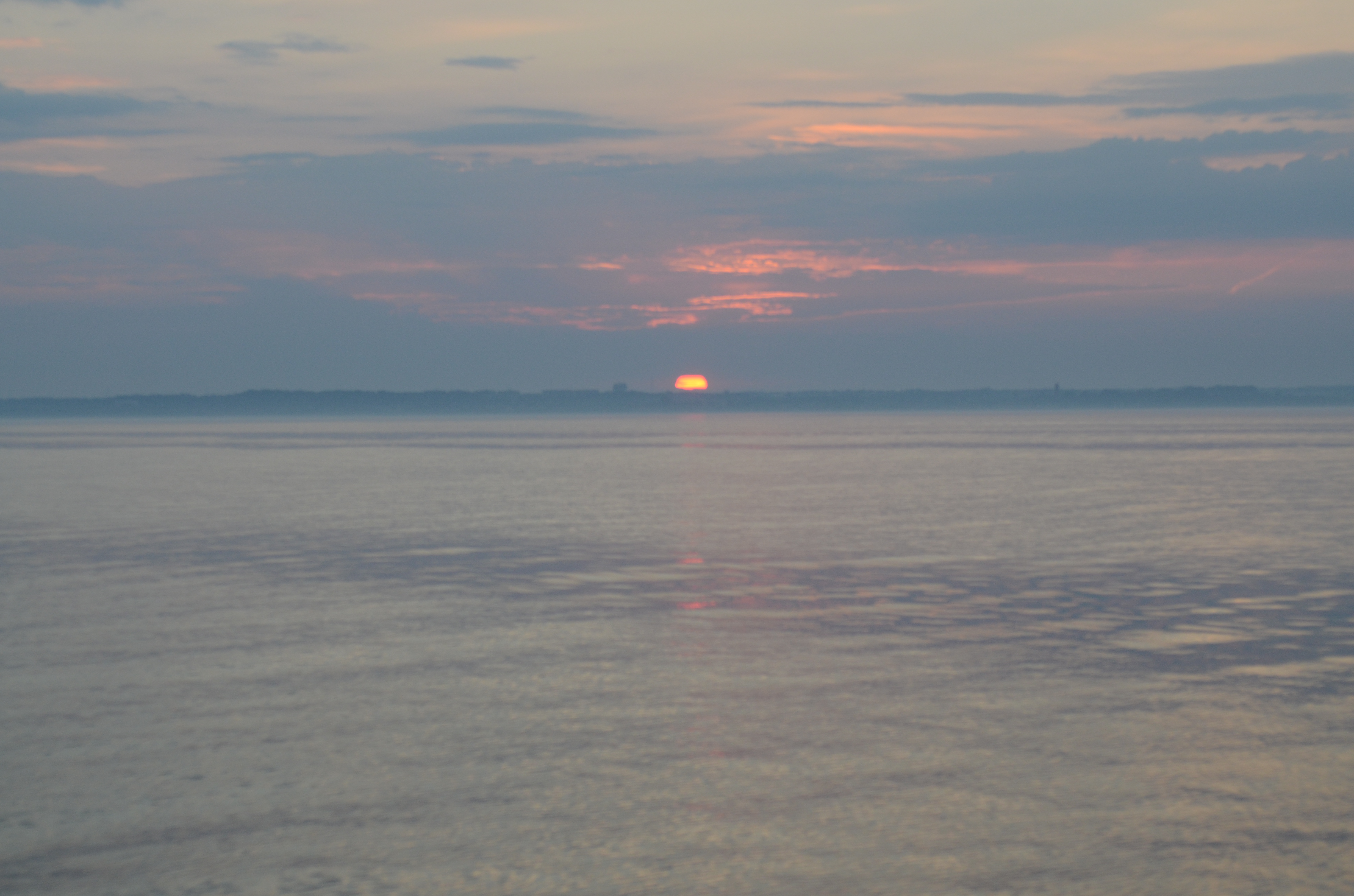 Hvorfor så tidligt? Anholt er kendt for at havnen er overfyldt så hvis man skal have en chance for at få en plads skal man ankomme midt om dagen. Der var stadig ingen vind, men vi fik fornøjelsen af en smuk, smuk solopgang. En stor orange boldt der gled langsomt op over den svenske kyst. Vi kunne føle dens stråle varme os mere og mere for hver minut der gik.
