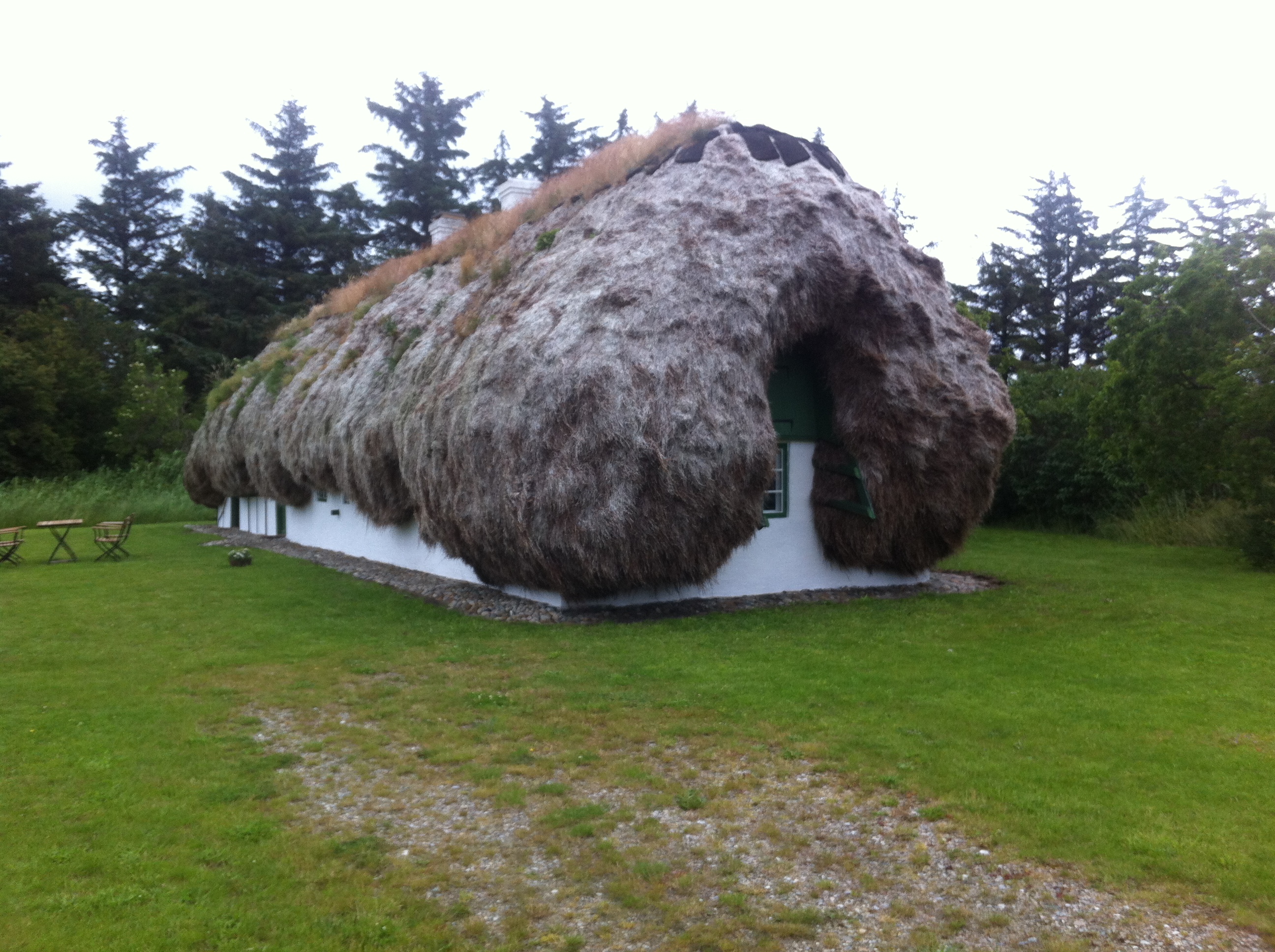 Denne grand tour af Østerhavneby tog omkring en time (samt en time hvor vi kiggede i butikker med sejlertøj). Altså var vi tilbage ved båden inden frokost. Som vi spiste og derefter tog en lang lur. Vi var inviteret til middag hos Per og Pernille, vores naboer i KBH som har et sommerhus på Læsø. Faktisk har de to sommerhuse på Læsø, den ene et fredet tanghus, det andet en gammel gård der har været et tanghus men det meste af tangtaget er nu væk.