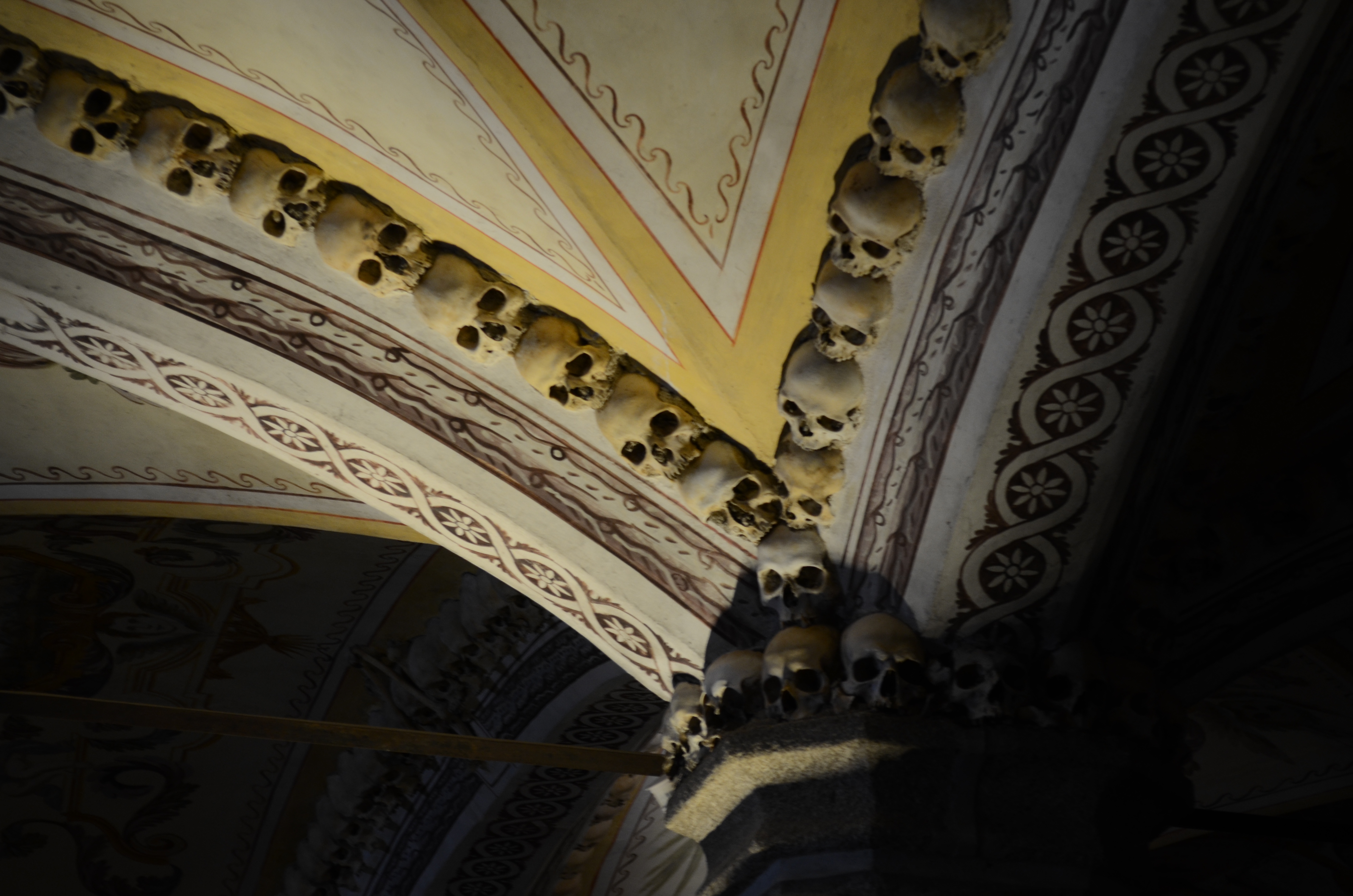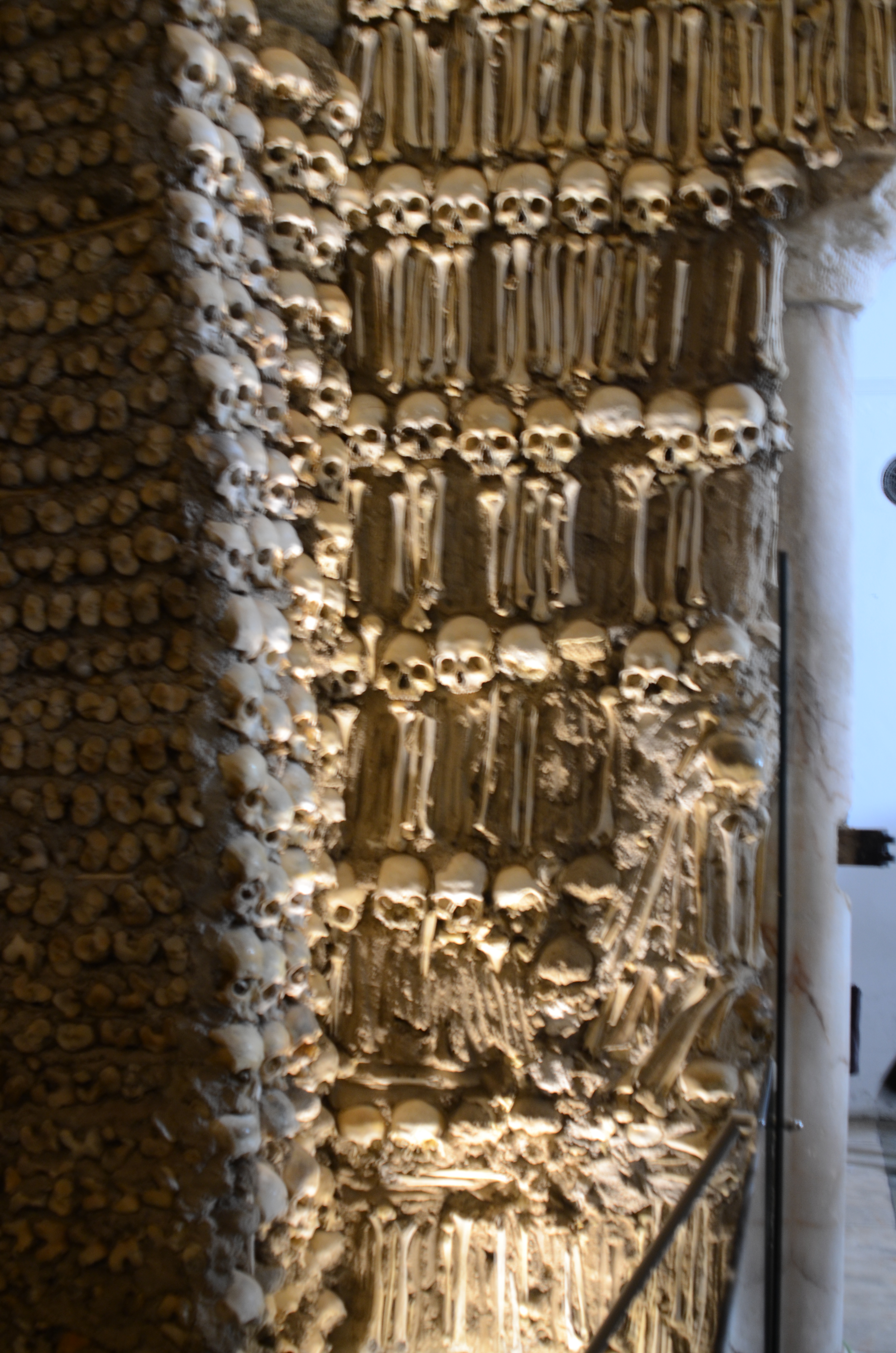 En af sædværdighederne (!) i Evora er knoglekirken. Hele indersiden af kirken er belagt med knogler af de afdøde. Det er meningen at det skal vise hvor lidt livet betyder i forhold til det evig liv som man oplever hvis man holder sig i skinnet og opfører sig ordenligt – vel at mærke