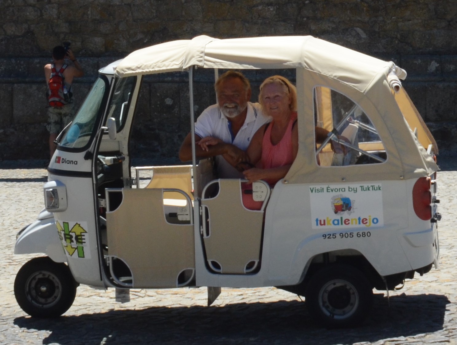 Men Evora er nu en dejlig by – vi fandt nogle påfugle og blev kørt rundt i en tuk-tuk