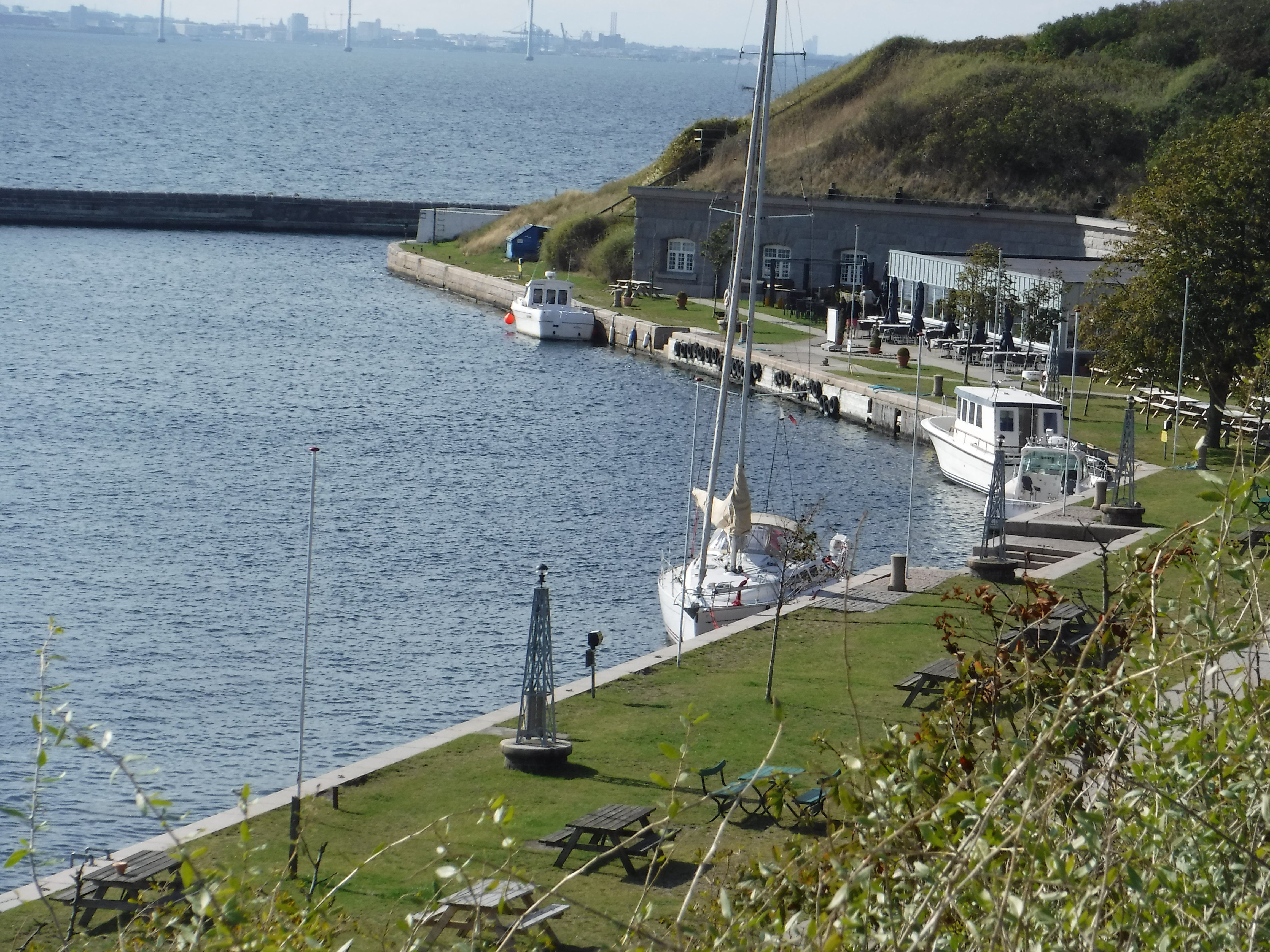 Flakfortet, for dem som ikke kender det, ligger 1 1/2 times sejlads fra KBH ude i Øresund. Det blev bygget i 1914 af forsvaret. Samtidigt byggede de Middelgrunden. De skete ved at de tog nogle gamle skib, fylde dem med sten, sejlede dem ud og sænkede dem. Så havde de en platform til at bygge videre på. Her er nogle billeder fra Flakfortet. Kanonerne er væk og det er et fredeligt sted hvor der er indrettet et “Sailors Corner” med grill pladser og picnic borde. Det er et favorit destination for Københavnske sejlere for en aften eller weekend.