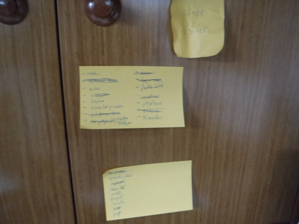 På båden er der faste rutiner, når man ruller ud af køjen. Først et kig på barometeret, dernæst et kig på ankeralarmen, for at sikre at ankeret ikke har skredet, så et kig på batterimåleren for at sikre at vi har masser af strøm. Nu kan vandet til morgenkaffen/te sættes over, og imens det kommer i kog, kan der tages en tur i cockpittet for at se, om alt er vel i verden. Svajer vi for tæt på evt. andre både i nærheden? Hænger lille Capri godt i sit fald? Ser rig og alt på dækket ud, som om det er i orden? Nedenunder – skal vi køre watermaker i dag? Hvad står der på reparationslisten (grædemuren)?