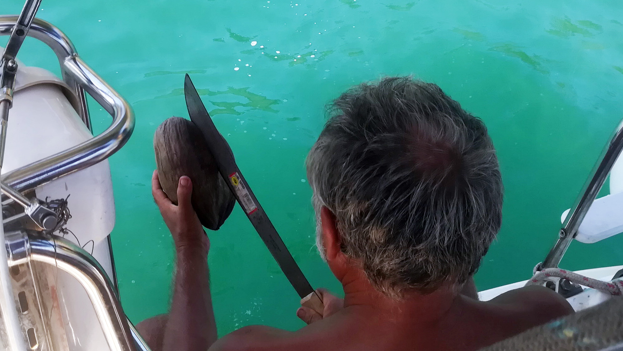 Eller skal vi sige pokker tage det – vi elskede Fransk Polynesien – og derfor dreje til styrbord ved Mexico og sejle ud til Tuamotus, Selskabsøerne og blive der et år eller to. Så videre over Stillehavet og ende i Danmark om fire, måske fem år. Et par eller tre-fire flere år i badetøj og flip-flops? Det lokker. Vi savner at plukke bananer, papaya, mango og ikke mindst pamplemousse fra træerne, når vi gik rundt på øerne. Carsten savner at komme hjem med en sæk kokosnødder og sidde ude på hækken med sin machete for at flække nødderne.