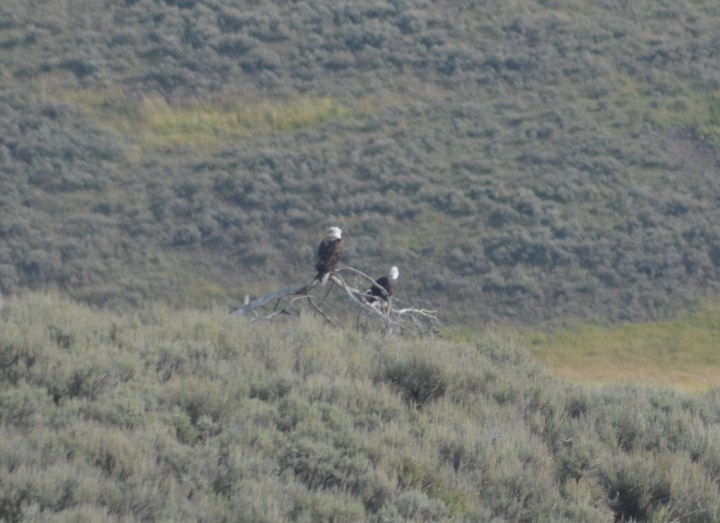 Et meget sjældent syn er at se USA´s national fugl The Bald Eagle. Vi er ekstremt heldige, da vi kommer kørende hen over engen og får øje på de to store ørne, som mig bekendt kun findes i Nordamerika.