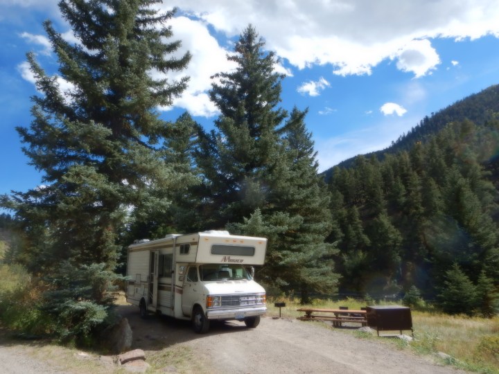 Vi har valgt at bruge parkens ”natur”-campingpladser, som adskiller sig fra de campingpladser, der findes derhjemme i DK. Man kan vel sige, at vi camperer mere primitivt. Her camperer vi midt inde mellem grantræerne, hvorved der skabes mere privatliv end på de åbne campingpladser, vi er vandt til derhjemme. Faciliteterne er begrænsede. Den føderale administration har besluttet på grund af covid-19 at lukke for alle brusefaciliteter (på de få campingpladser hvor de findes) og lader kun toiletterne være åbne. I de mindre civiliserede National Forest, som vi møder senere på turen findes kun (rene) lokummer (uden træk og slip). Her findes hverken internet eller telefonnet. Det er første gang vi er uden kontaktmuligheder – på Capri til søs har vi dog satellittelefonen.