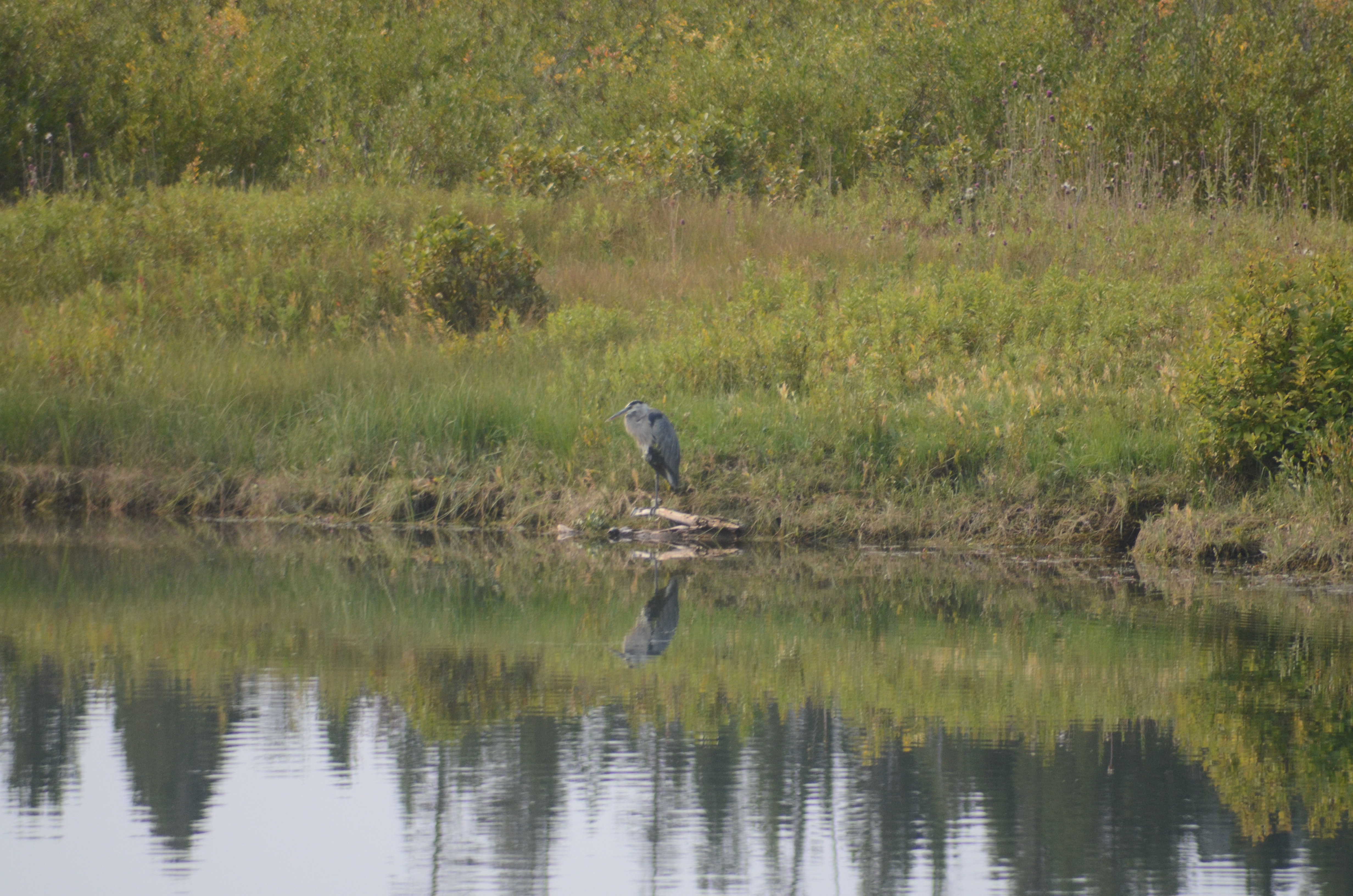 Her håber vi på at se elge, men vi er ikke heldige den dag, i stedet ser vi en flok odder med unger lege i floden, mens den blå hejre ser på.