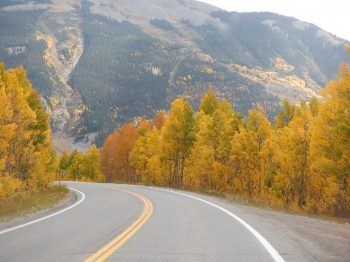 Den lille (og den er lille) vej vi skal ned af strækker sig 109 miles (omkring 170 kilometer) gennem Uncompahgre og San Juan National Forests. Det er alt sammen bjergkørsel.  Der er en smutvej der er 30 kilometer kortere, men vores landkort viser at tager vi den, så skal vi over nogle bjergpas der er højere end 12000 fod (3200 meter).  Desuden er vejen afmærkede som mindre på kortet.  Jeg siger kækt til Vinni at vi tager den store vej, da den garanteret er nemmere. Jeg har før kørt af nogle af de små bjergveje i Colorado og har ikke behov for at stifte bekendtskab med dem igen – de kan være frygtindgydende.