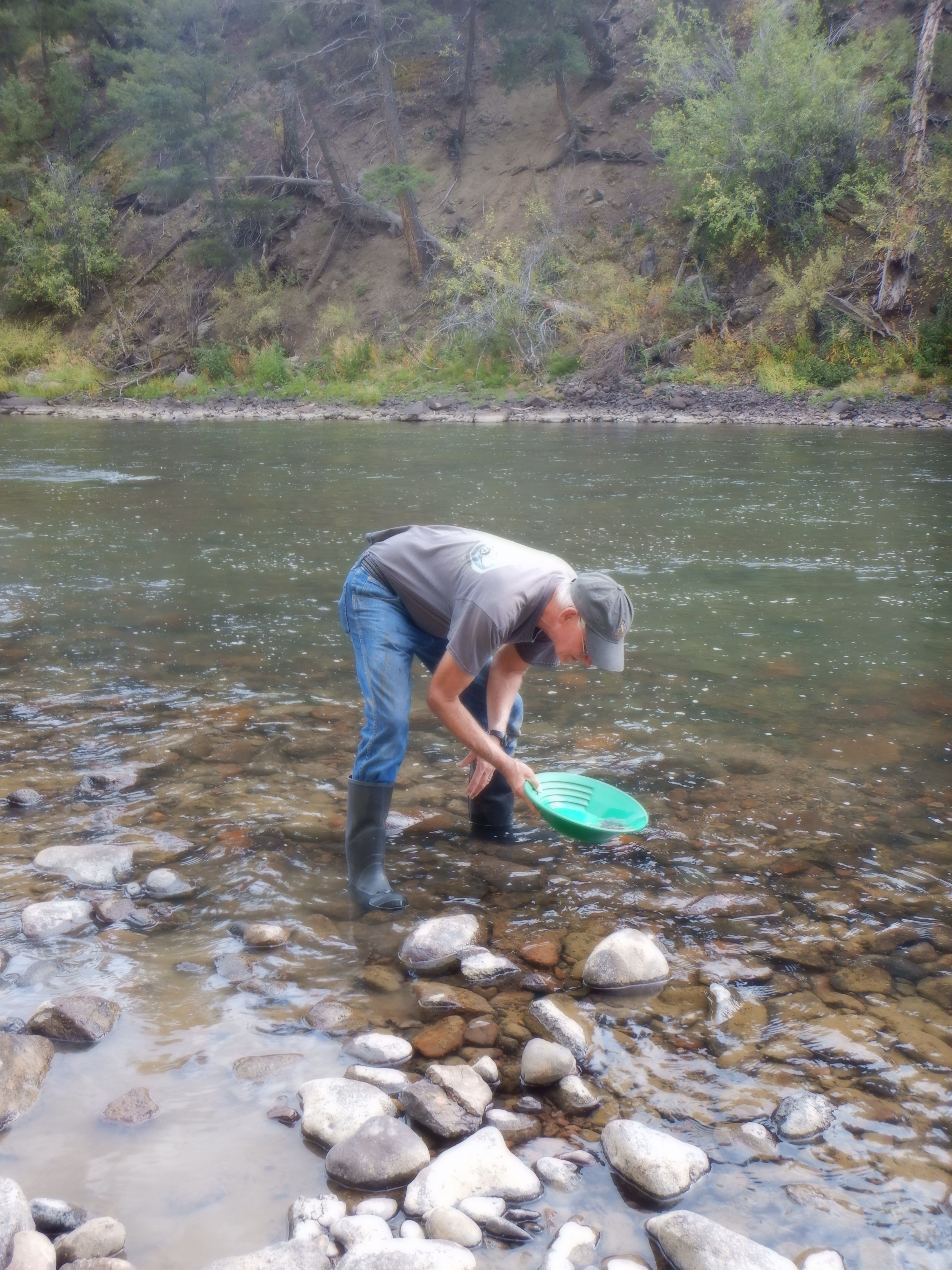 Det er det ikke. Det er stadig mange steder man kan pande for guld og hvis man er ihærdige nok kan man også finde lidt guld. Manden ved floden her fik et par flager af guld for sine bestræbelser.  Ikke nok til at de er værd noget, men får man nok af dem, kan de smeltes og så kan der laves en lille smykke af det guld man selv har fundet. En sådan gave vil da gøre enhver kvinde meget glad.