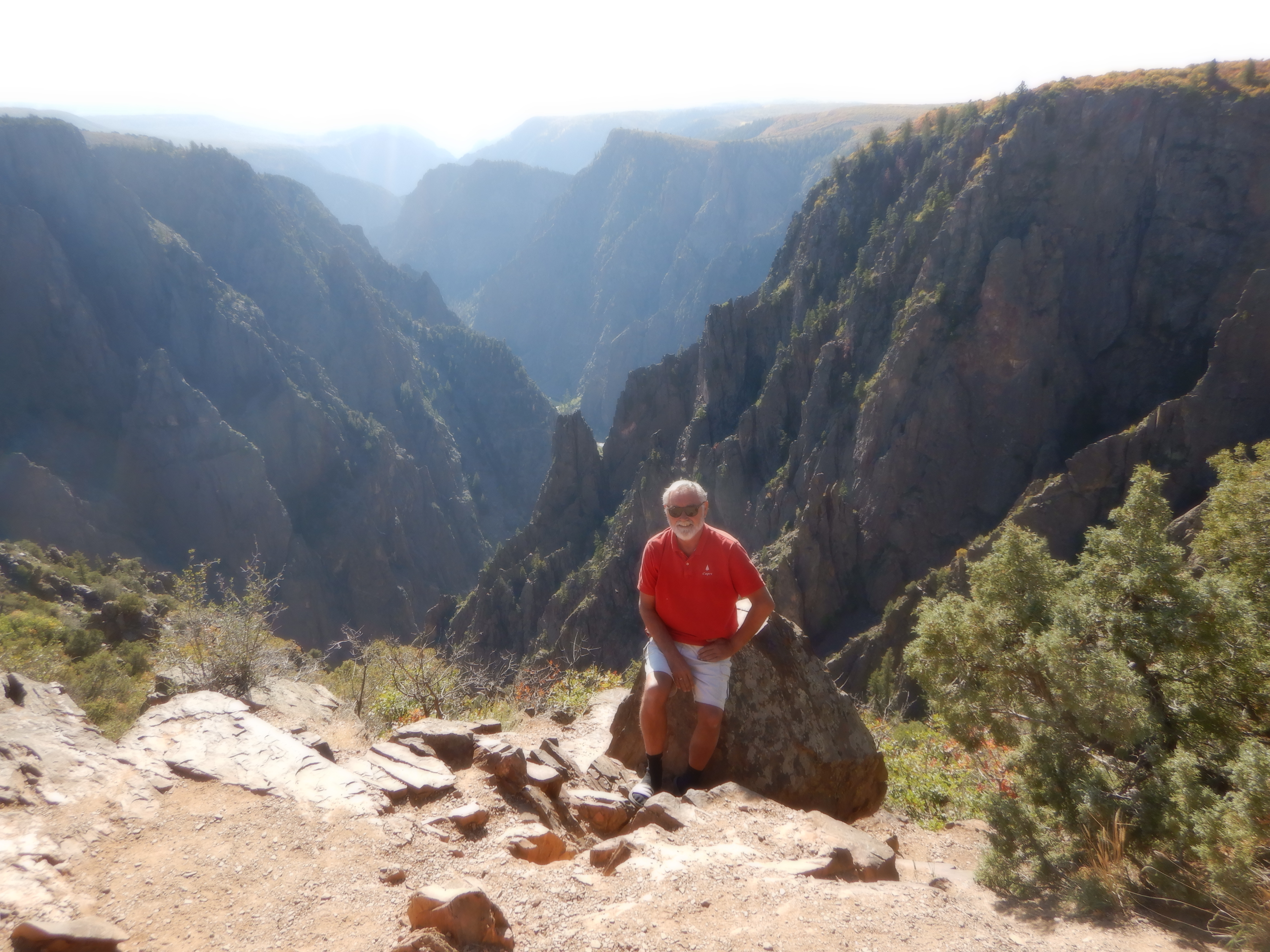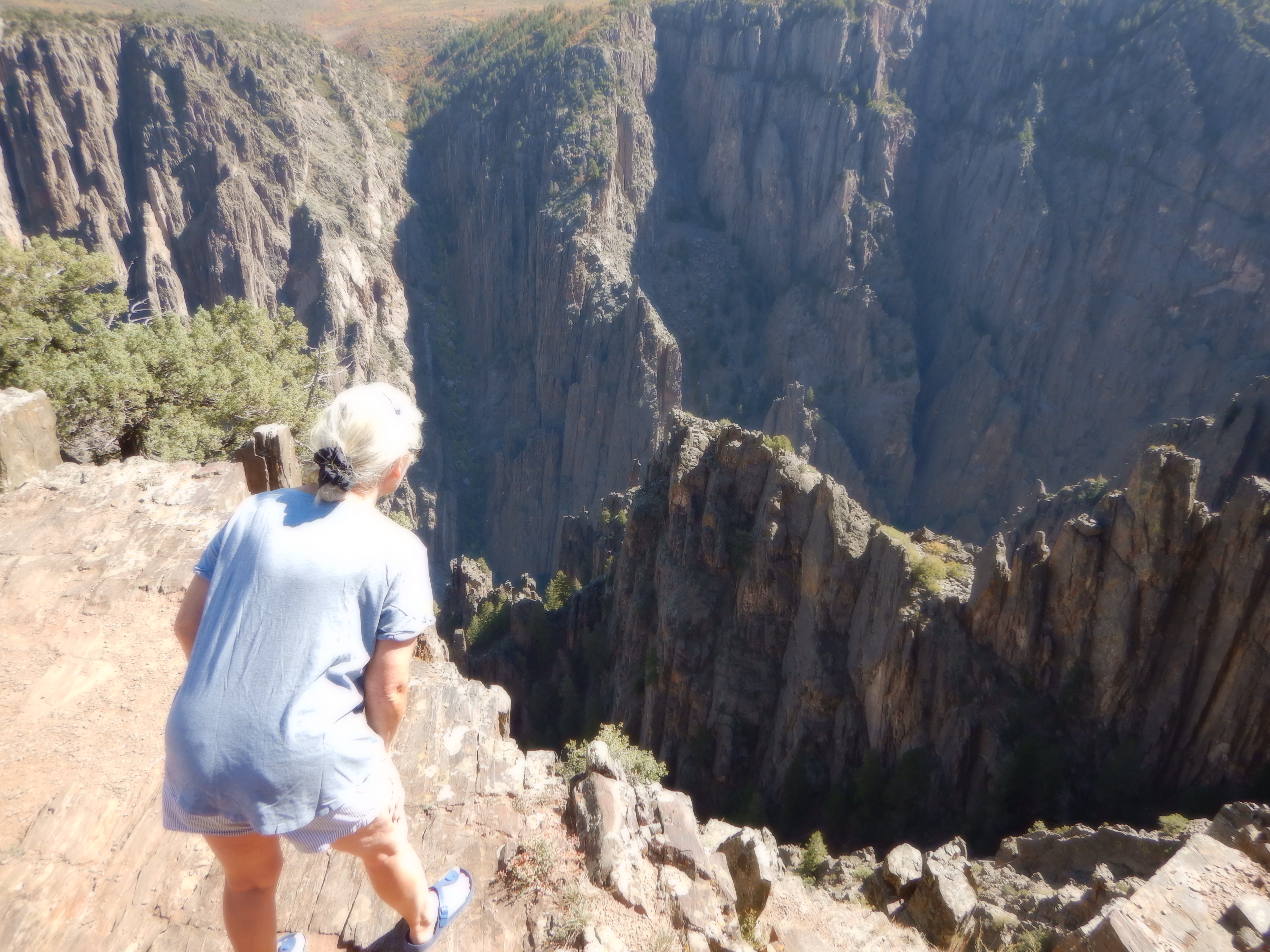 Jeg har som sagt fortalt Vinni mange gange om Black Canyon og den næste morgen da vi starter Caprise og kører de 40 kilometer begynder jeg at blive lidt nervøs.  Det er trods alt over 50 år siden jeg så den.  Vil den leve op til mine (og Vinnis) forventninger?  Har jeg ”oversolgt” den?  Det er en snæver asfalt vej der fører op til Parken. Igen er det gratis for gamle nokkefår at komme ind og en lille kilometer fra indgangen kommer det første udkigssted. Vi parkere Caprise og bevæger os hen mod kanten.