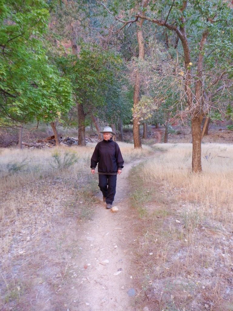 Vi stod meget tidligt op og ankom tidligt nok til vi kunne parkere inde i parken. Straks tog vi bussen til den anden ende af ”scenic drive”. Bussen var, selv så tidligt om morgen, fyldt med menneske iklædt travetøj og bærende gangstave. Alle skulle ud og trave på stierne. Som bussen kørte derudad, kunne vi se at vandrestierne var allerede fyldt med mennesker. Der ville altså ikke blive tale om at gå fredfyldt alene og nyde naturen og stilheden som vi havde gjort i Canyonlands. Der var så mange at det var lige før der skulle står nogle ordenspoliti og dirigere med de travende for at undgå trafikpropper (nej – jeg overdriver ikke).