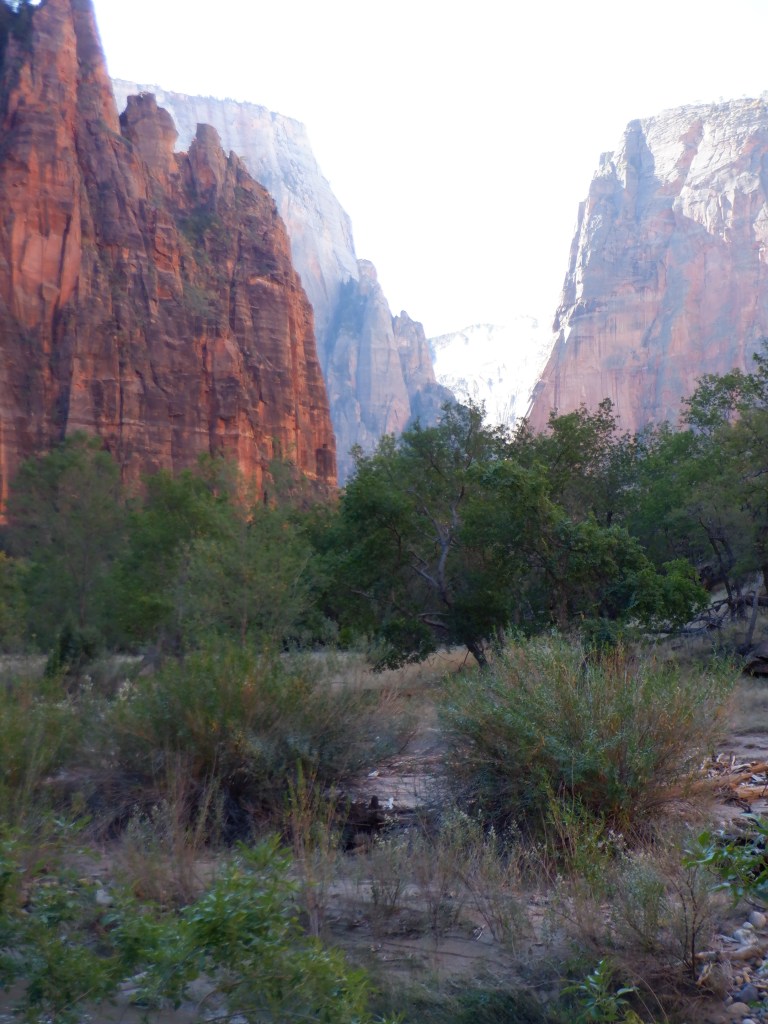 Hvorfor hedder det Zion? Stedet blev navngivet af Mormonerne da de fandt stedet meget fredfyldt og himmelsk. Vi har læst at Zion får over 3 millioner besøgene om året og at Parken er reelt lukket for biler. Kommer man tidligt nok, kan man parkere inde i Parken, ellers er man henvist til at parkere i byen lige udenfor parken (de ved godt hvad de skal have for en p-plads der). Når man har parkeret tager man en gratis bus der kører fra den ene ende af parken til den anden.