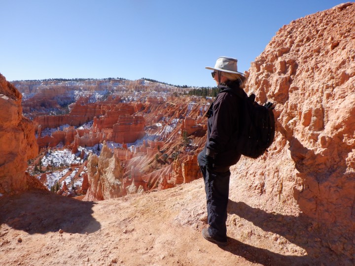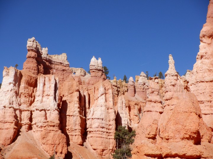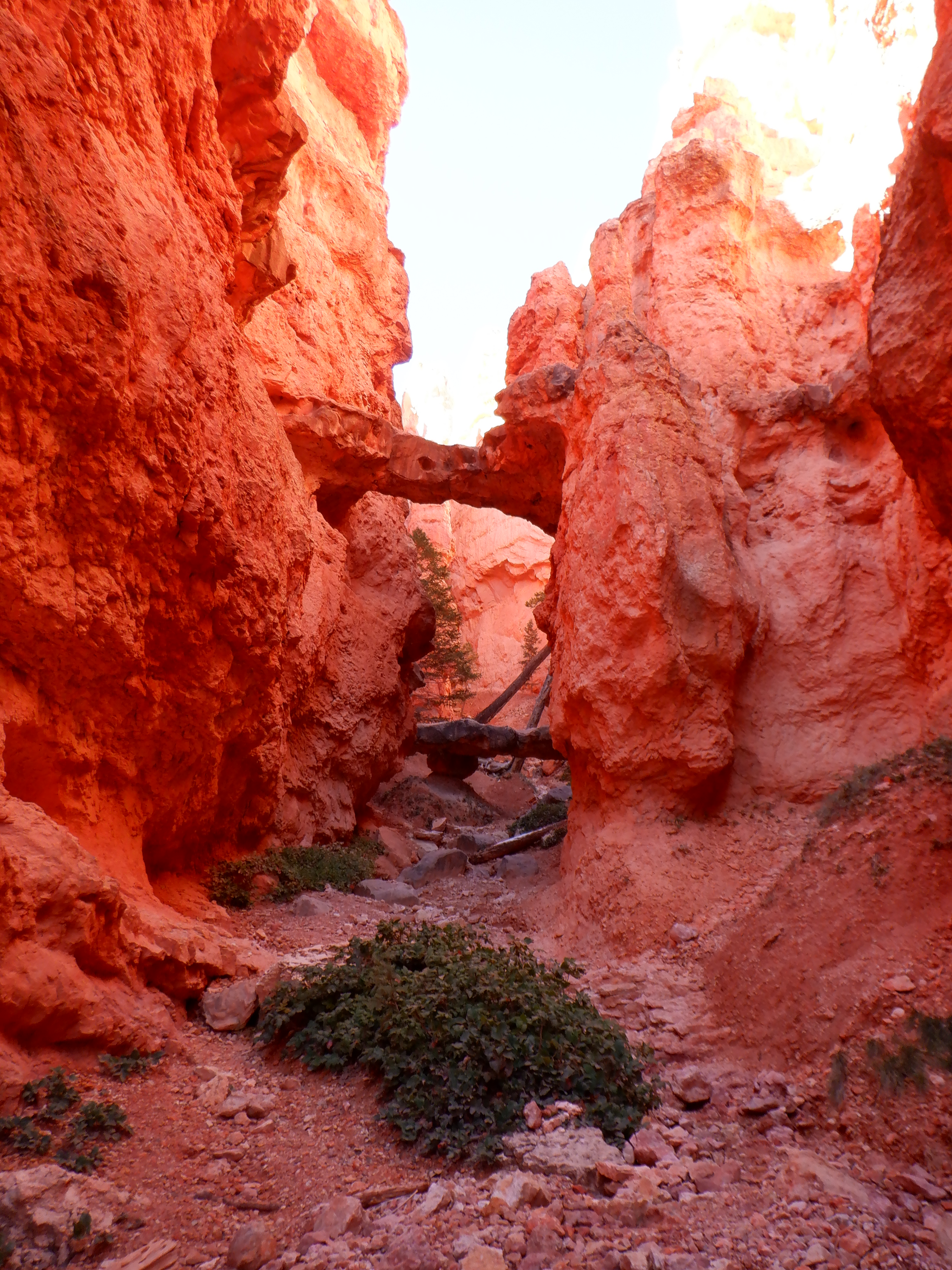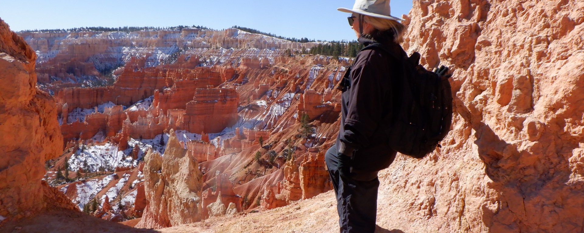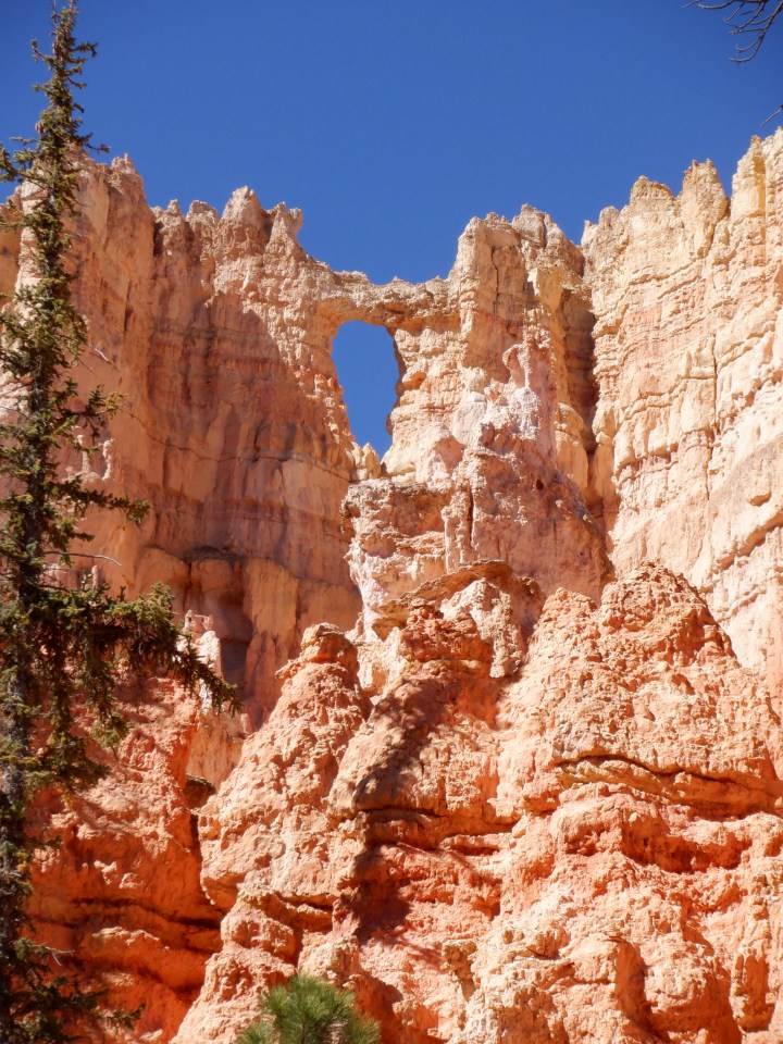 Vinni og jeg starter ned ad Queens Garden Trail. En rundtur skulle være cirka 3-4 kilometer. Ved bunden møder den Navajo Trail og har man lyst kan man tage den op. Turen ned går fint, vi bliver lidt stakåndet et par gange da stien ikke udelukkende går nedad, den går også opad, men vi har fint. Stenformationerne er ubeskrivelige. Vi holder op med at sige ”aha”. Det nytter jo ikke noget. Selv om vi er tidligt på den, er der mange mennesker på denne sti. Vi får slet ikke den samme fornemmelse af at være alene i verden som vi havde i Canyonlands.