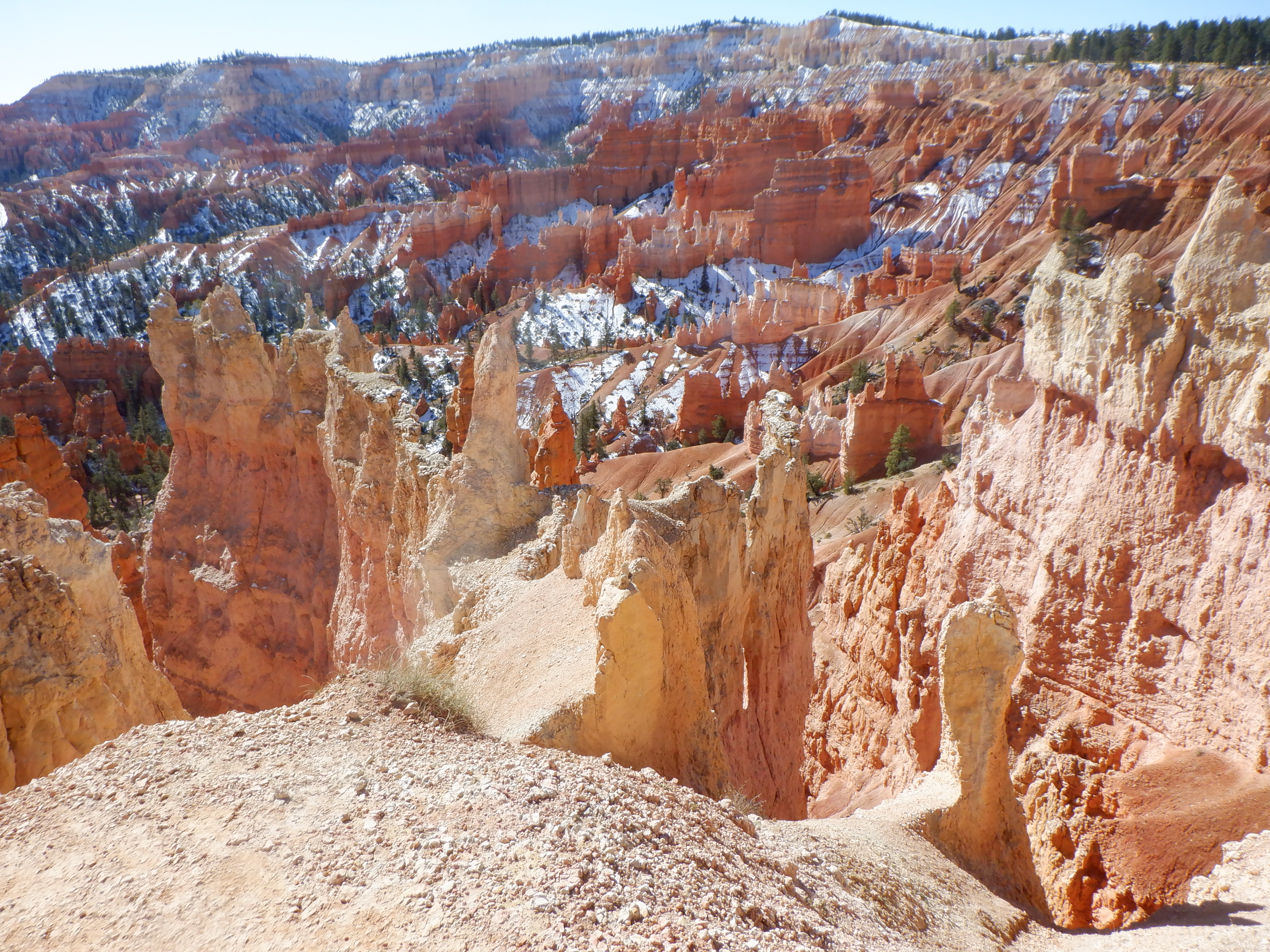 Bryce Canyon, navnet til trods er ikke en canyon i videnskabelige forstand. En canyon er skabt af en flod der erodere sig ned gennem underlaget og skaber derved en kløft (Grand Canyon, Black Canyon osv.). Bryce er skabt ved at regnvand og smeltende sne er sivet ned i det porøse sandsten og når det så fryser, så ekspandere det og sprænger dele af stenen væk. Der er over 200 frostnætter om året her i Bryce. Det har taget hundrede tusindvis af år eller mere at skabe Bryce.