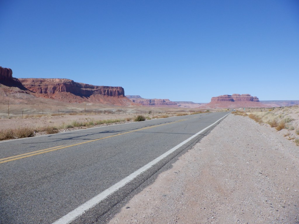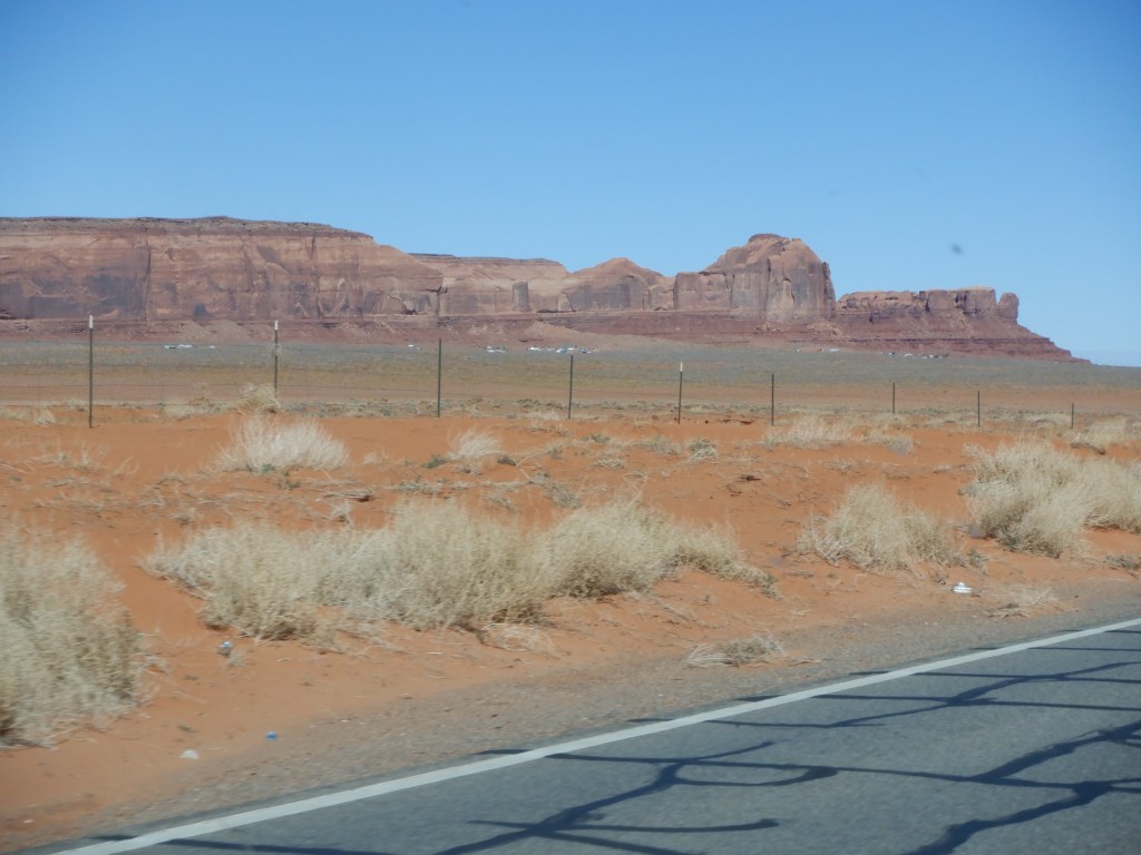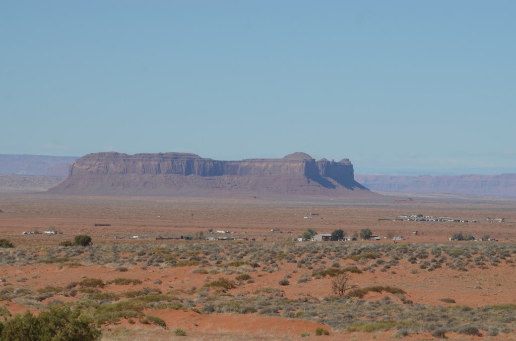 Vi ser ingen byer i flere timer, før vi er nået halvvejs op til Monument Valley. Her kører vi igennem byen Kayente, hvor husene ser ens ud bortset fra, at tagene har forskellige farver, så indianerne kan finde deres ejet hus. Husene er de typiske kedelige præfabrikerede huse, der blev finansieret af den føderale regering tilbage i slutningen af 60erne eller begyndelsen af 70erne. Afroamerikanernes kamp for deres civile borgerrettigheder tilbage i 60erne, var et ”wake-up call” for de forskellige indianerstammer, der herefter også begyndte at stille krav til den føderale regering. Det medførte, at regeringen blandt andet som her i Kayente har betalt for, at der blev stillet ”rigtige” huse til rådighed for indianerne, så de ikke længere skulle bo i deres adobe-huse. Byen så så kunstig og intetsigende ud, at jeg helt glemte at tage et billede af den.