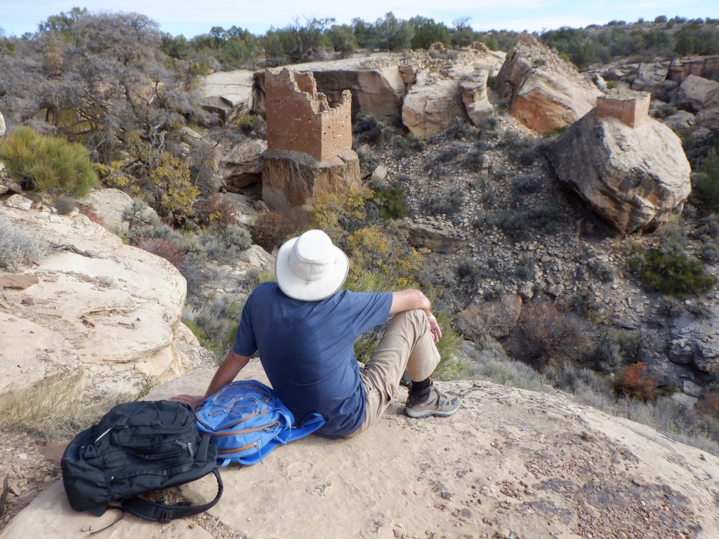 Vi er ankommet tidligt nok til at nå traveturen ”den lille ruin tur” som på engelsk hedder ”Little Ruin Trail”. En travetur på 4 km, hvor man går langs kløftekanten og ser forskellige rester af ruinerne: