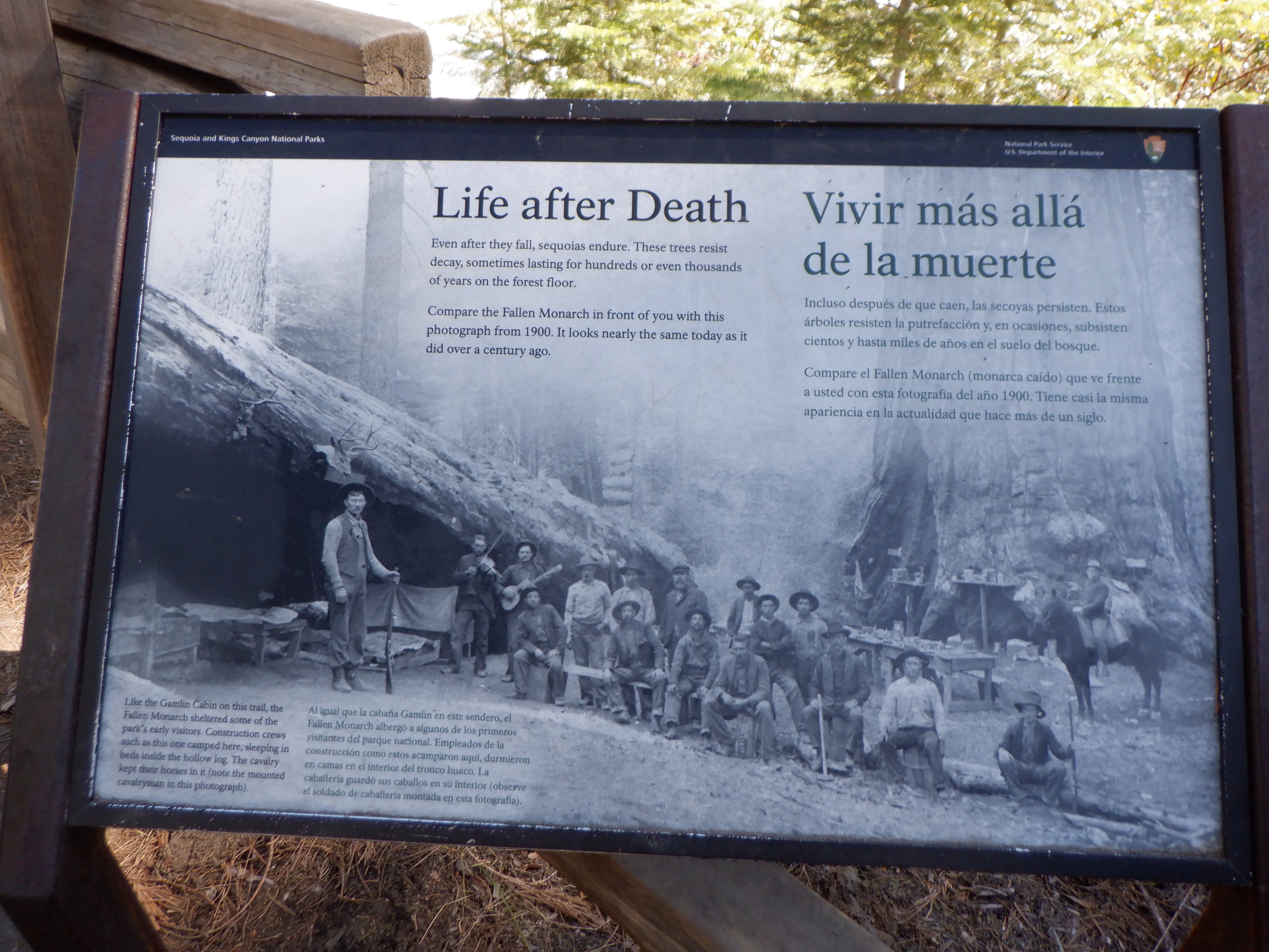 Giant Sequoia træerne kan blive flere tusinde år gamle, og selv efter de dør ud og vælter bevares stammen eller den tykke bark i mange år.