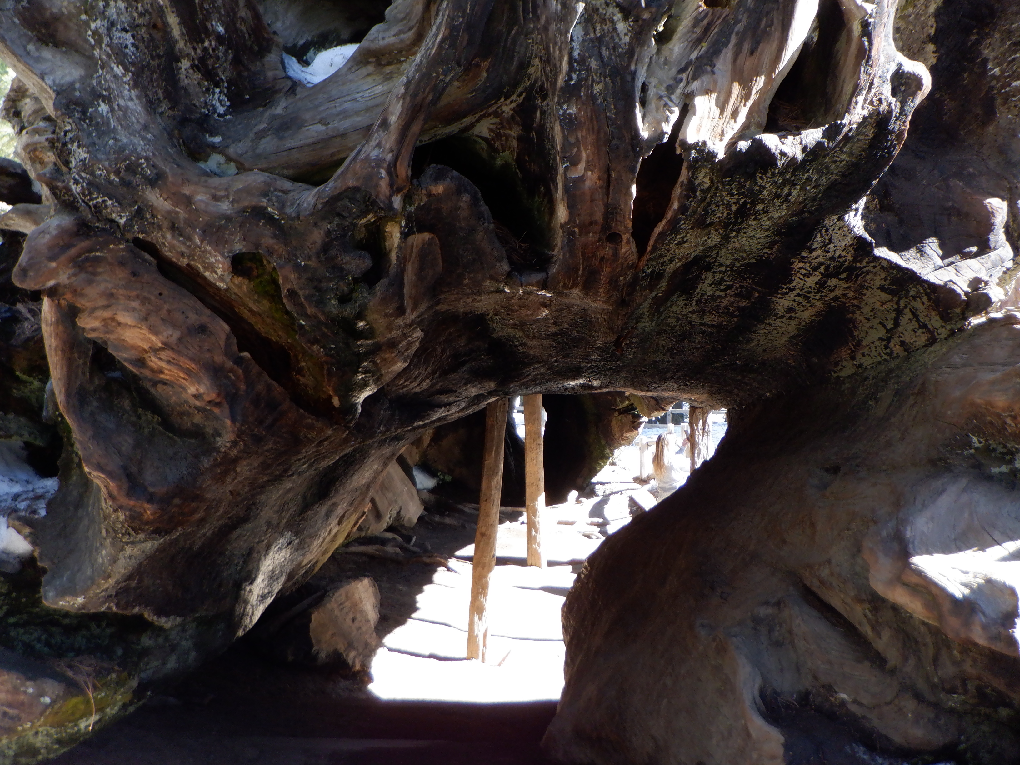 Det går alligevel ikke som planlagt. Vi ankommer til indkørslen til parken, hvor parkbetjenten kan oplyse os om, ja, at parken er åben, men vi kan kun køre ca. 10 km ind i parken, da resten af vejen er lukket på grund af vejarbejde. Carsten nåede vist ikke helt at orientere sig på parkens hjemmeside. Vi kan derfor ikke komme i nærheden af Californiens berømte Redwood træer, der her kaldes for Giant Sequoia. Betjenten anbefaler os i stedet at vende om og kører næsten hele vejen ned ad bjerget for derefter at køre langs bjerget ca. 40 km og derefter 50 km op ad en smal bjergvej til naboparken Kings Canyon, hvor vi kan se verdens næststørste træ.