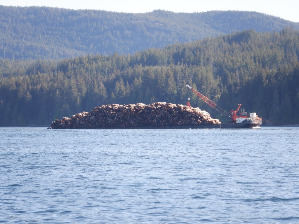 Det er store træstammer, som slæbebådene under deres transporter har tabt. Måske kan tømmeret ikke slå hul i skroget på Capri, men det kan beskadige aksen, propel eller roret, så det er vigtigt at undgå kollision med disse træstammer. Vi har ikke helt kunnet undgå forhindringerne, og det har det givet Capri nogle ordentlige ”mavepuster”, når træstammen banker op under skroget. Blot et kortvarigt øjeblik hvor styrmanden eller kvinden ikke har holdt udkik, så dukker træstammerne pludselig op, og vi kolliderer. Træindustrien er stor her i Canada, og ved de fleste havne findes diverse savværker, som sviner vores kære Capri til i gult træstøv, som findes overalt på ruffet og i cockpittet. ØV.