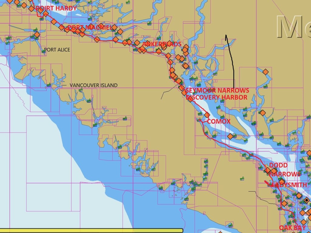 Vi beslutter os derfor for at sejle videre, da vi har det perfekte vejrvindue over de næste to dage, hvor vi skal sejle op gennem den mest kritiske distance op gennem The Inside Passage på den nordøstlige side af den store ø Vancouver Island. Vi vil derfor nødigt blive forsinket og blive i havn, da næste vejrvindue først er om en uges tid.