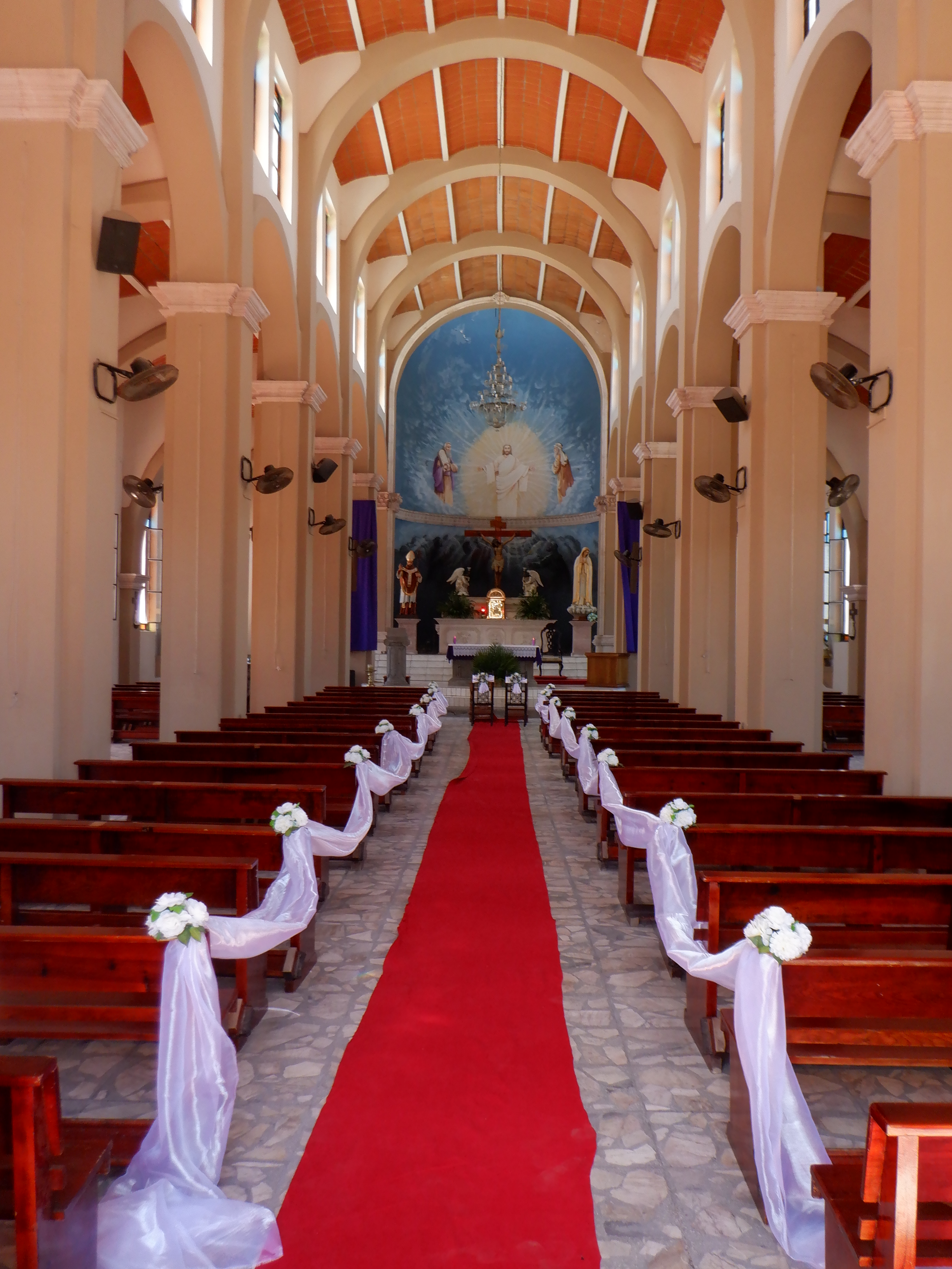 Vi tog billeder af interiøret og sendte dem til hende. Kirken var dekoreret til et bryllup senere den dag så vi fortalte hende at byen stadig huskede hendes bryllup og lod kirken stå klar hvis hun skulle have brug for et nyt bryllup.