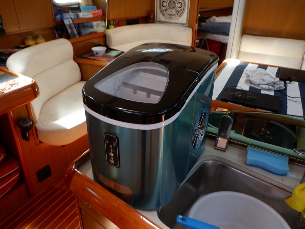Vores nye isterningsmaskine kom på overarbejde disse dage så Fruen kunne nyde sin G&T når det blev Happy Hour