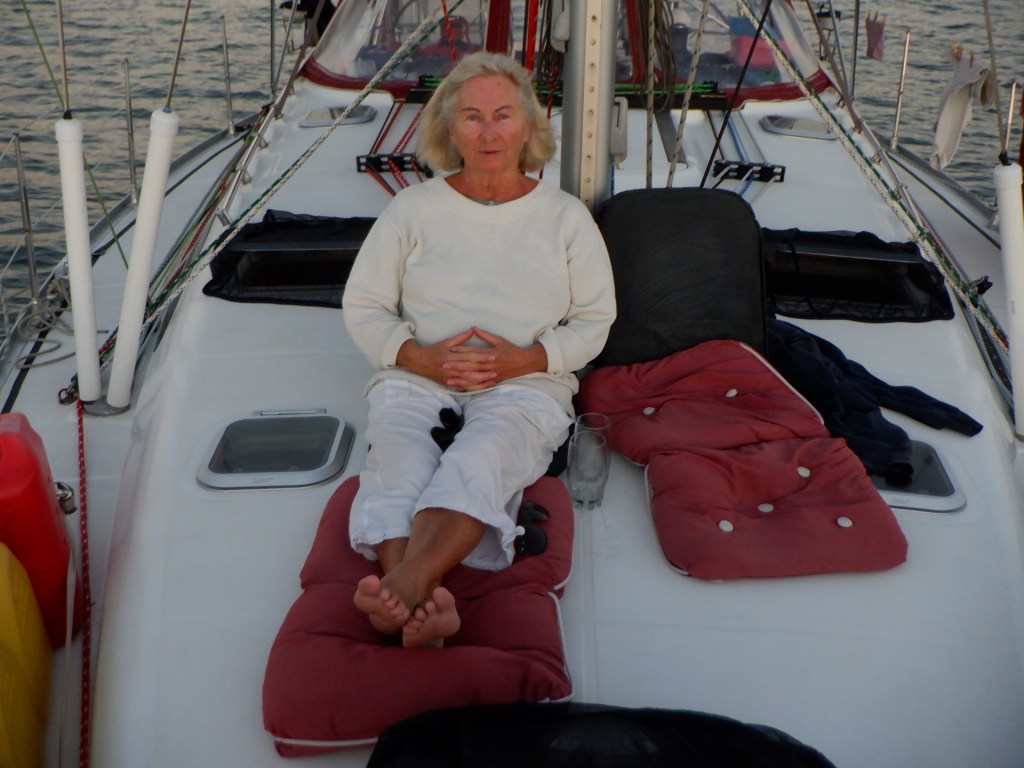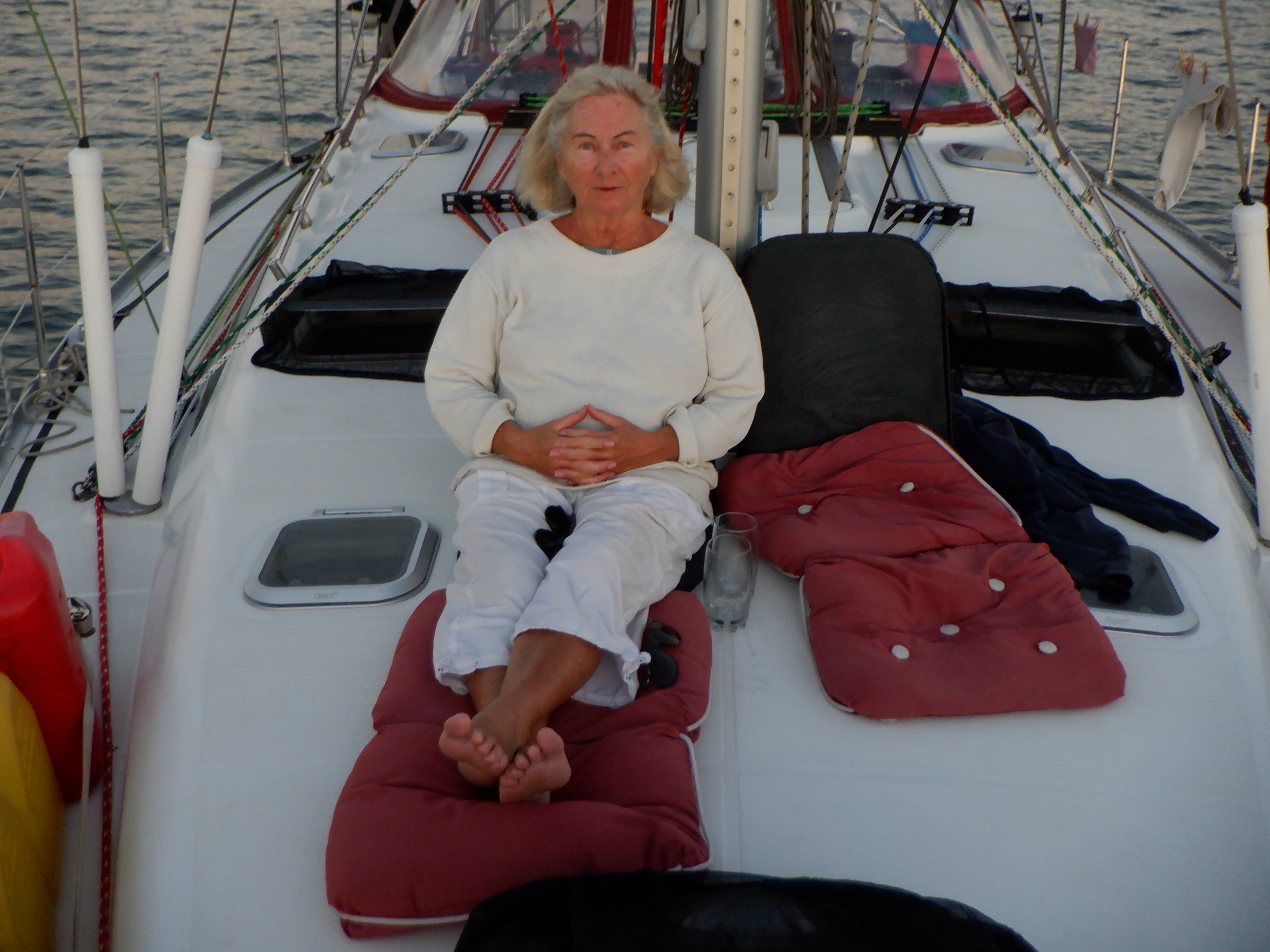 Ak ja, Vinni og Carsten tager ud for at sejle. Nu havde det blæst hårdt i 3 uger og da vi rundende pynten og kom ud var der – ingen vind. Bogstaveligt ingen vind. 0.0 på vindmåleren. Endeligt sagde den 2.0 men den drejede konstant hele kompasset rundt hvilken betød at vinden (det lidt der var) kom fra alle sider næsten samtidigt. Derudover virkede vores log (hastighed gennem vand måler) heller ikke. Jeg trak det op og rensede det minutiøst, men det viste stadige ingen ting. Når jeg drejede det lille hjul med fingeren, viste det fint fart, så det at det ikke virker når det er i sin plads gennem bunden af båden betyder at vores bund er totalt groede til. Jeg ved godt at jeg viste disse billeder før – men i får dem at se igen.