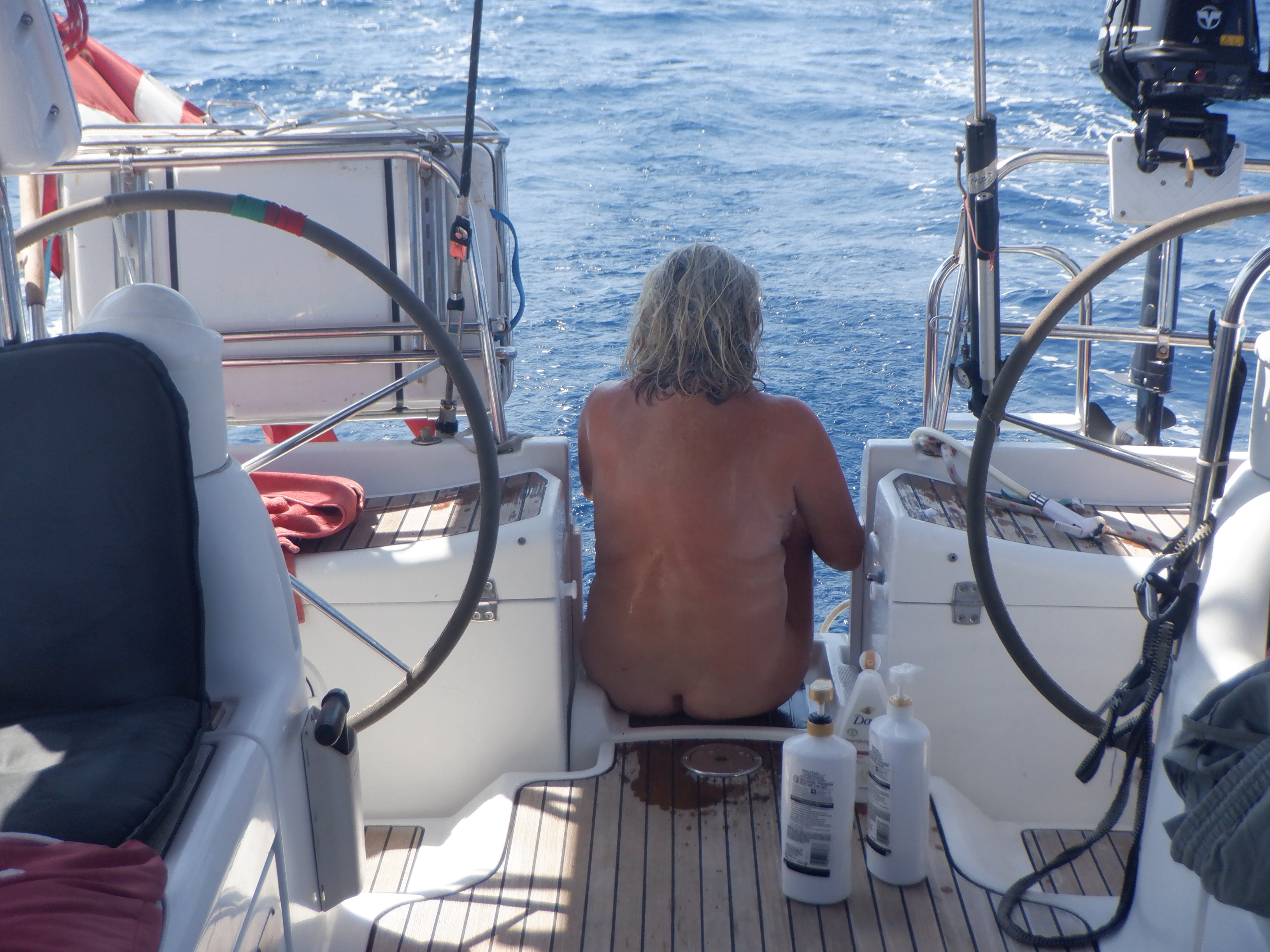 Når vi som her efterlader Capri i to uger, har vi picklet (med kemikalier) vores watermaker, hvorfor den skal skylles grundigt igennem, før vi kan tage den i brug. Jeg ved ikke, om jeg er i besiddelsen af en sjette sans, eller om det er min langturssejlererfaring, der tilsiger, at man skal være på forkant med, hvad der kan ske. Jeg foreslår derfor Carsten, at han skyller watermakeren igennem om morgenen, lige inden vi stævner ud, for hvis nu der skulle opstå et problem, så er vi stadig i en marina. Carsten har sat proceduren i gang, da det er ham, der har sat sig ind i proceduren vedrørende pickling af en watermaker. Jeg ved ikke, hvorfor jeg går hen for at tjekke, om de respektive haner er åbnet, men godt at jeg gjorde det, for der løber vand ud på gulvet. UPS – flowmeterglasset er knækket, og der pibler vand ud – det går ikke. Den skal erstattes, og vi har selvfølgelig ikke en reserve ombord i en af alle de fem reservedelskasser, der er stuvet ude i agter rummet.