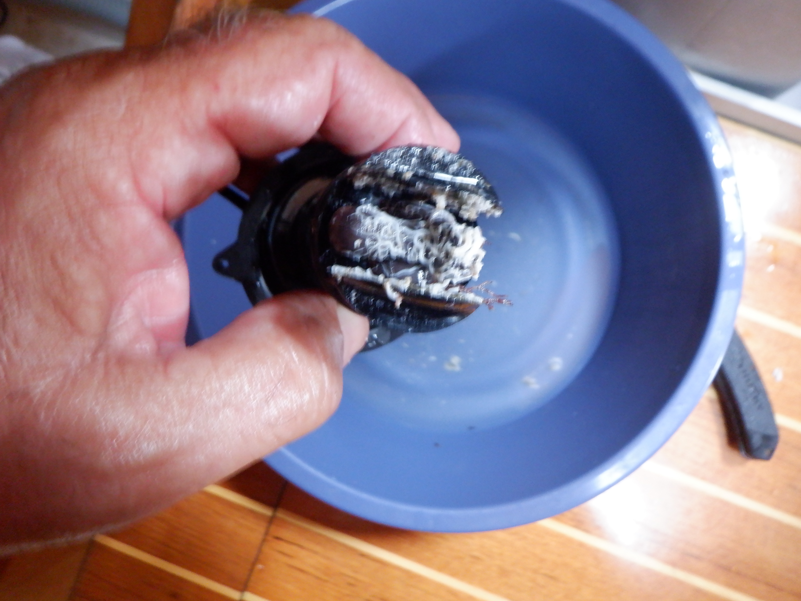 Vi når frem til Santa Marta for motor og fladt vand. Men som sædvanligt er vores log groet til med småkryb. Vi er nød til at rense loggen hver gang, når vi har ligget stille en uges tid.