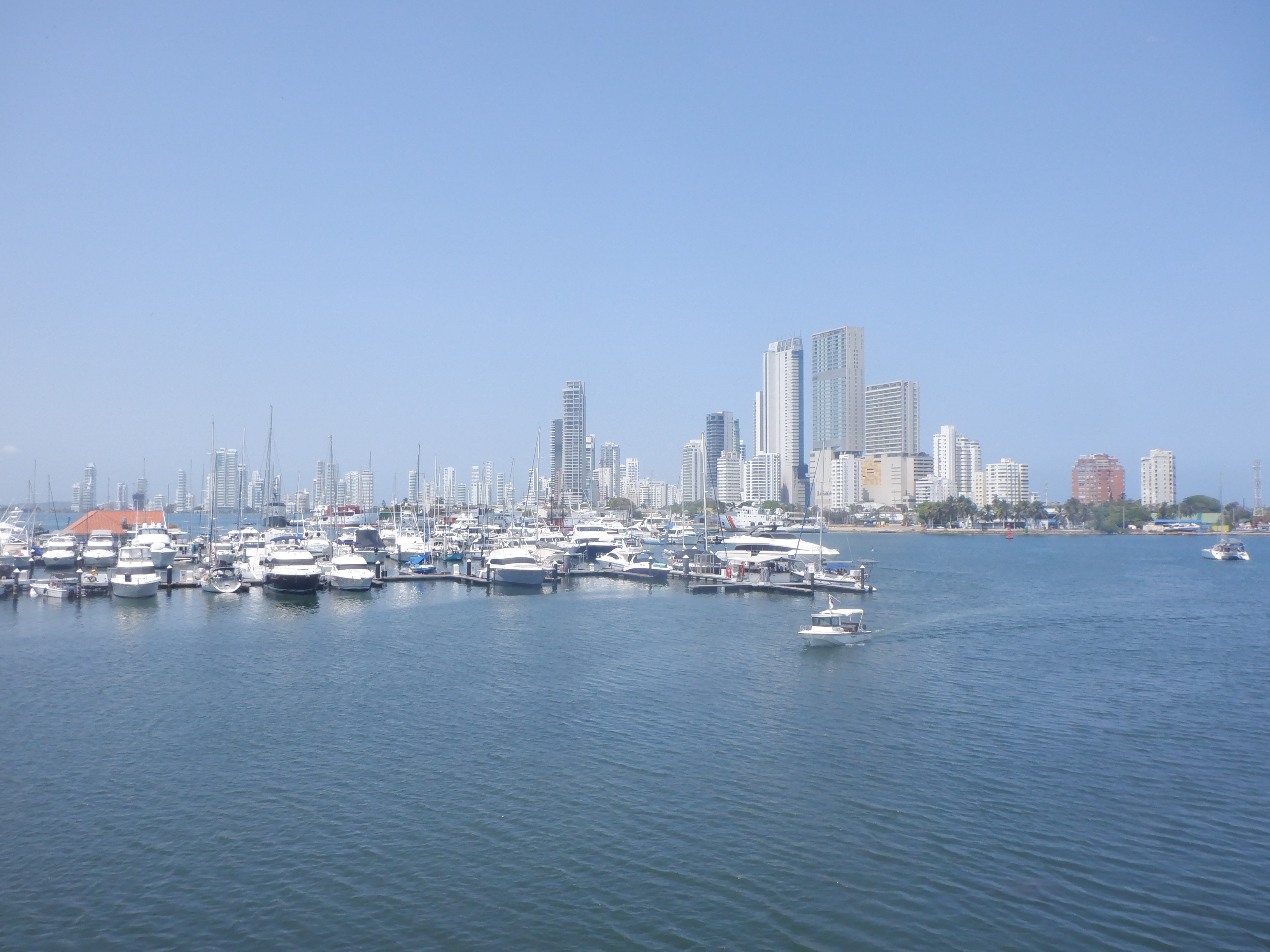 Herefter sejler vi en times tid op gennem lagunen til selve byen, hvor vi nyder synet af Cartagenas flotte skyline.