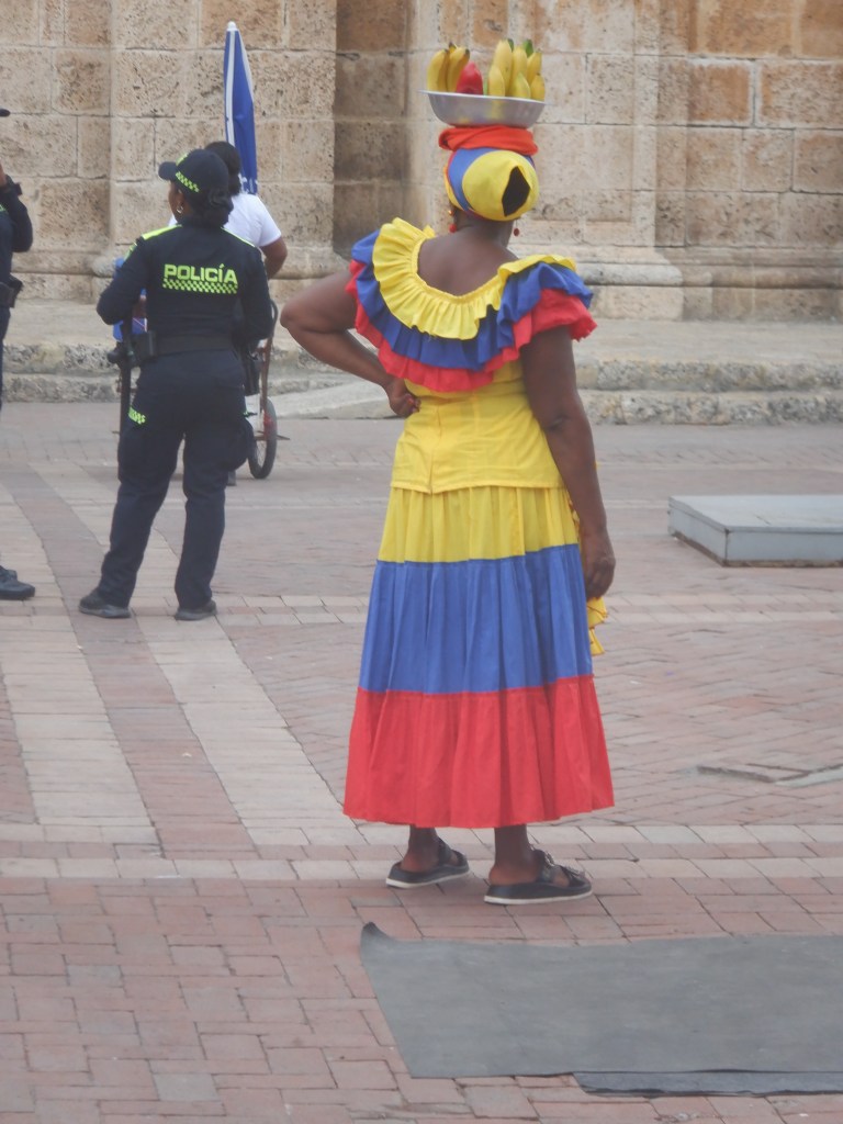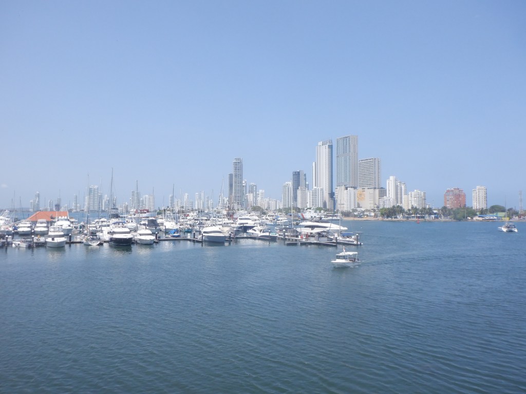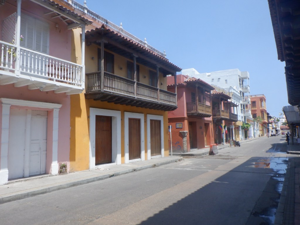 Cartagena har en smuk gammel bydel, der ligger indenfor de gamle fæstningsmurer ”The City behind the Wall”. Den må vi over at besøge. Vi bliver en smule skuffet. Det er en rigtig turistfælde, og gadesælgerne er lettere irriterende, da de ikke vil forstå et ”nej tak”. Der er så mange gadesælger, at man bliver spurgt hele tiden, om man vil købe noget. Alle forretningerne her er målrettet til turisterne.