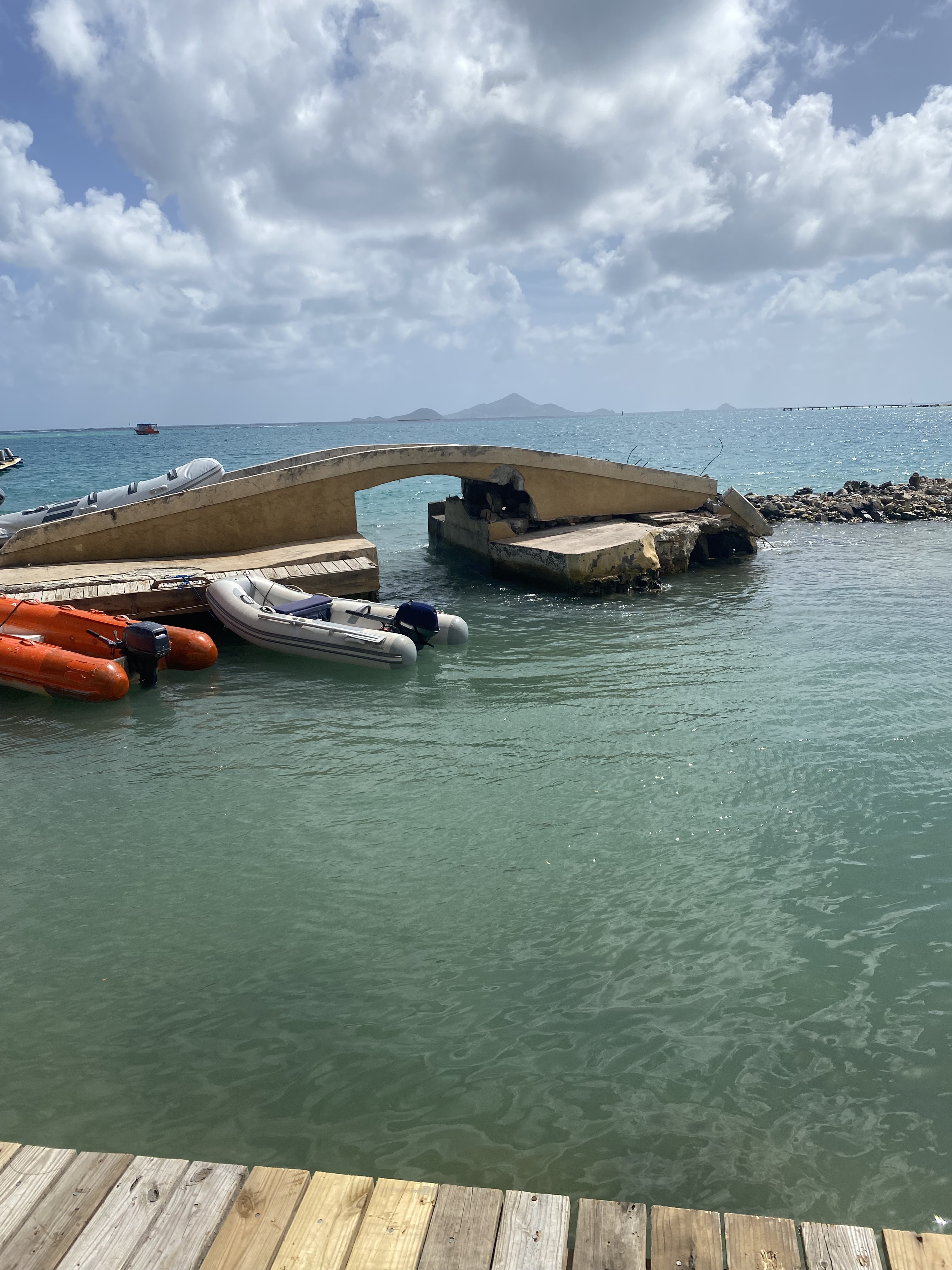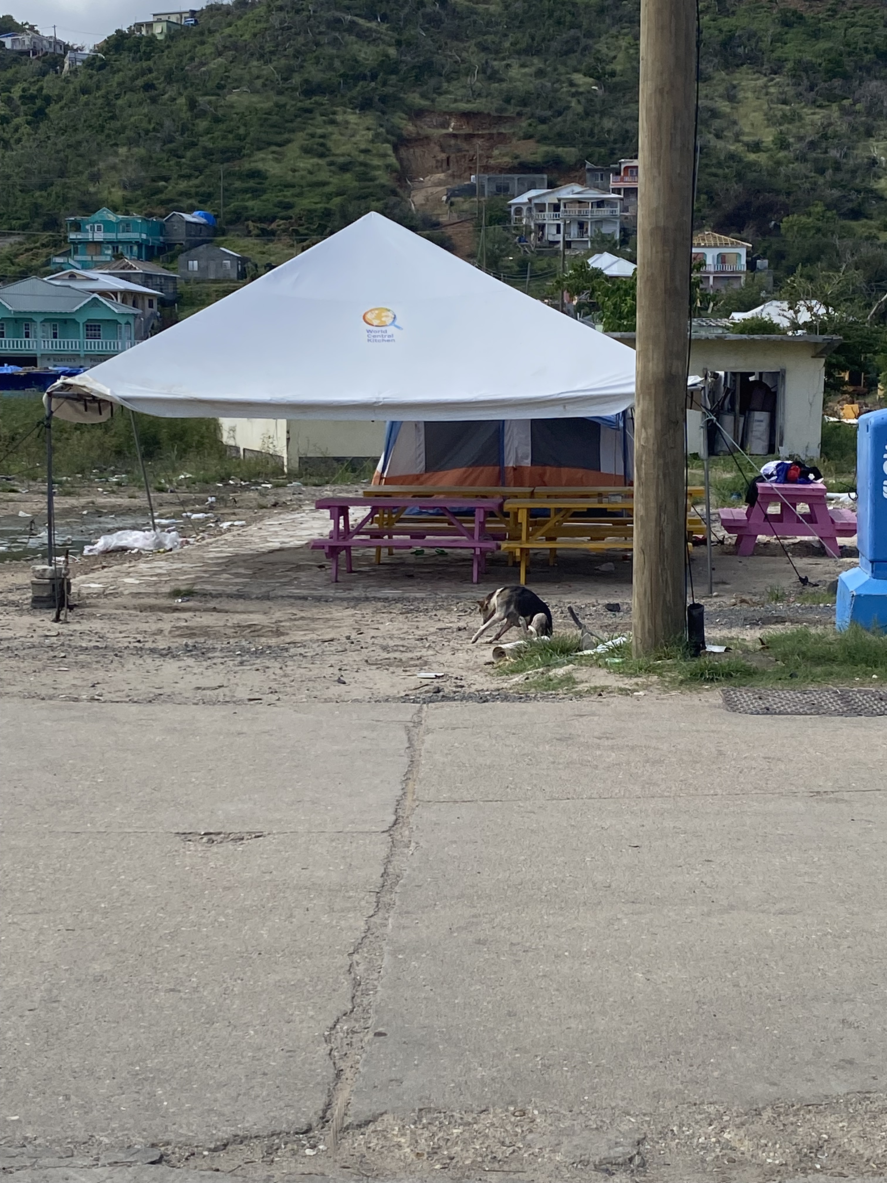 Nede ved havnen var der en telt by. Her boede de hvis huse var totalt ødelagt. Ved tovet (det der var tilbage af centrum) var der et suppekøkken. Da vi kom sidste gang var der en utrolige charmerende dinghy havn. Man sejlede ind under en lille bro og lagde til ved en træbro. Her var der en god bar og levende musik. Ved siden af var der en lille italiener hvor Vinni og jeg fik den bedste tun carpaccio vi nogensinde har smagt. Alt var væk. Barens vægge stod, samt en smule af taget. Den lille italiensk restaurant var kun murbrokker. Den charmerende lille beton bro man sejlede gennem var der endnu, men den var løftet op af vandmasserne og flyttet lidt til den ene side. Det hele skal bygges om.