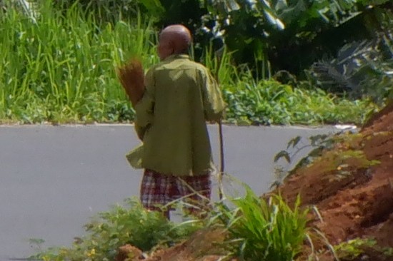 Senere kommer vi til indianerlandsbyen. Den er ikke forskelligt fra andre små landsbyer her på øen. Dog har de nogle boder langs vejen hvor de sælger flettede kurve. De kvinder der sælger kurve ser hverken asiatisk ud eller har bronzefarvede hud. En gammel mand kommer forbi. Han har bronzefarvede hud og ser lidt asiatisk ud. Desværre tog vi ikke et billedet da han var tæt på men vi kan dog ser ham gå lidt længere nede af vejen.