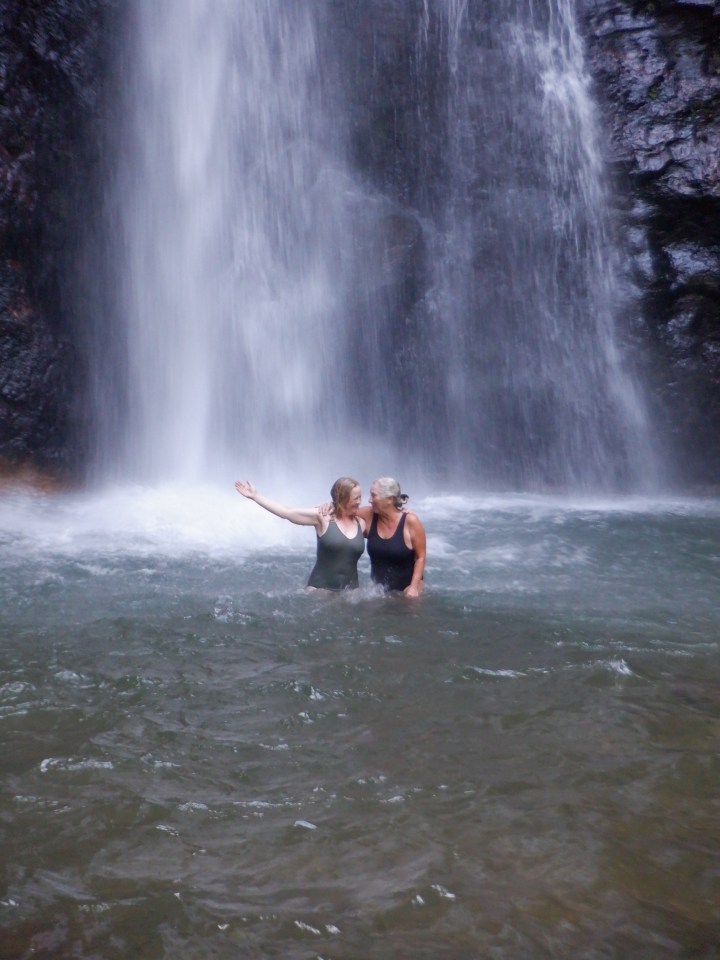 Vi samlede også lidt kokosnødder så bagagerummet var ved at blive fyldt. Syndicate Falls var en skøn oplevelse, der var næsten ingen der, så vi hoppede i vandet og lod vandfaldet give os brusebad.