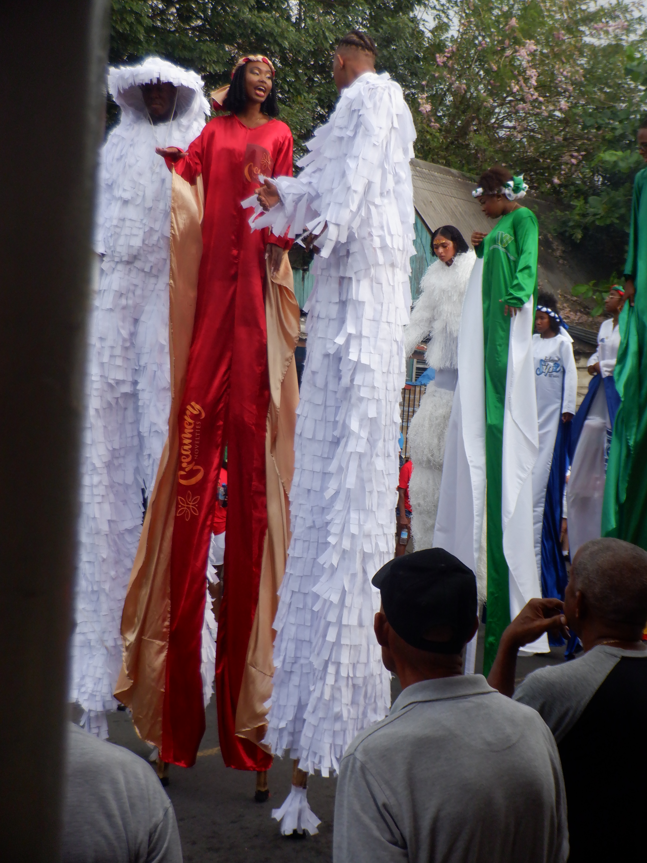 Utrolig præstation at kunne gå og danse på dem. Kostumerne var flotte og hele paraden var ledsaget af høj musik (meget, meget høj musik). Vi tog tilbage ud til båden men kunne høre festen inde på land til langt efter vi var gået til køjs.