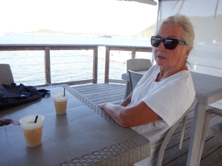 Vi var lamslået. Bugten var fyldt med både og strandbarene (der var flere) var overfyldte. Ingen her betalte med ”soggy dollars”. Vi spiste frokost og fik et par øl. Vi betalte med kreditkort.